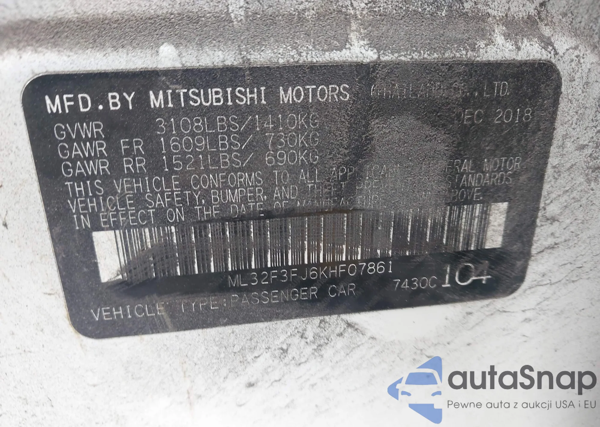 VIN: ML32F3FJ6KHF07861