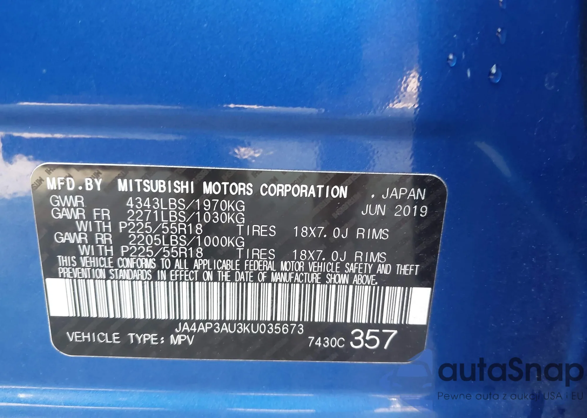 VIN: JA4AP3AU3KU035673