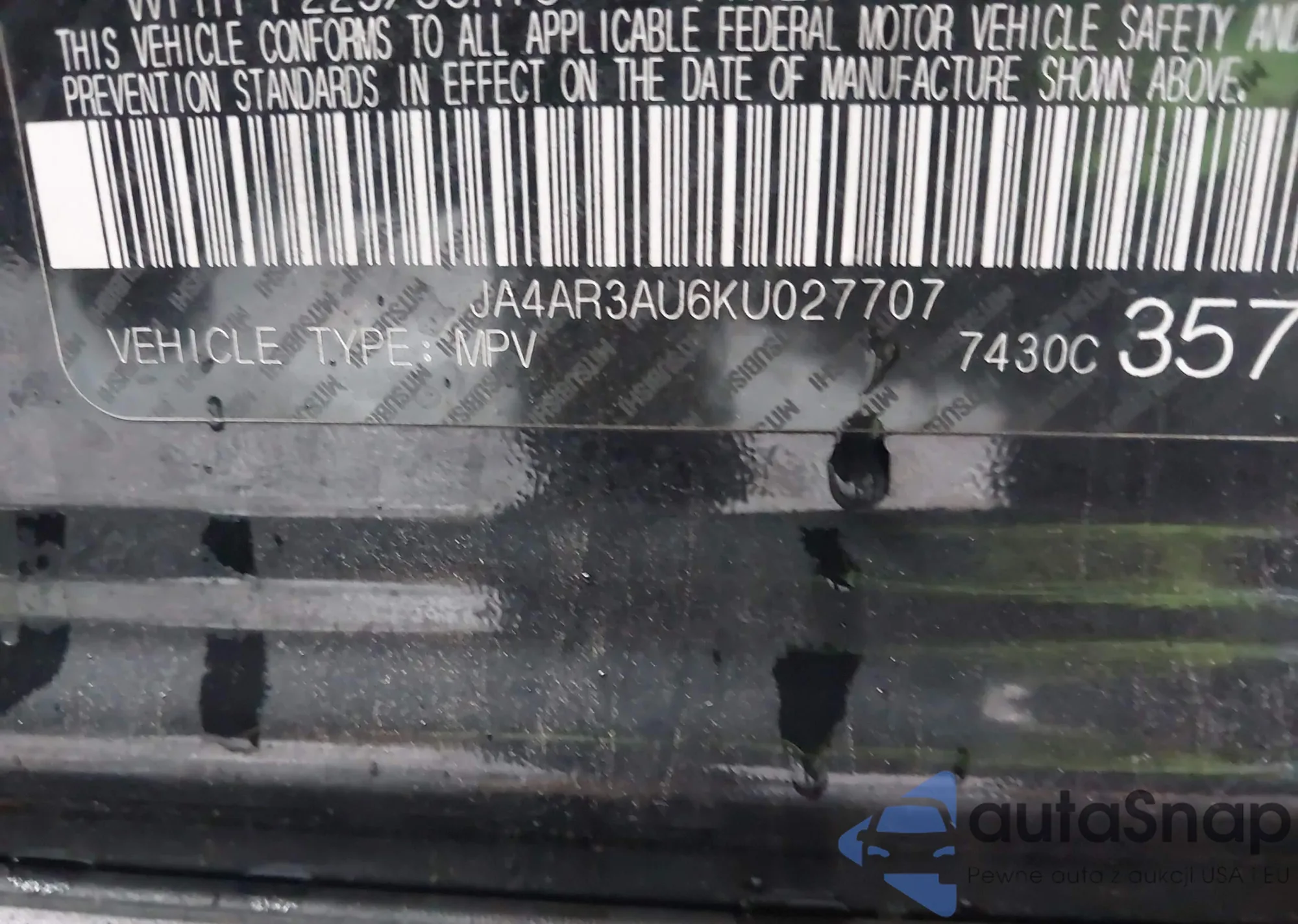 VIN: JA4AR3AU6KU027707