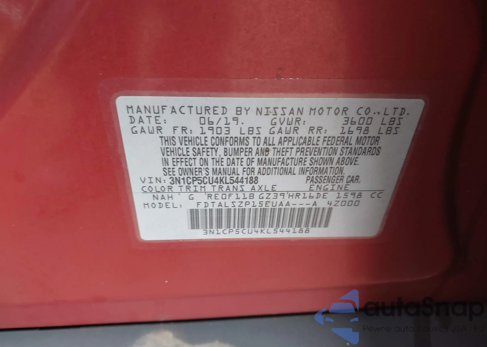 VIN: 3N1CP5CU4KL544188