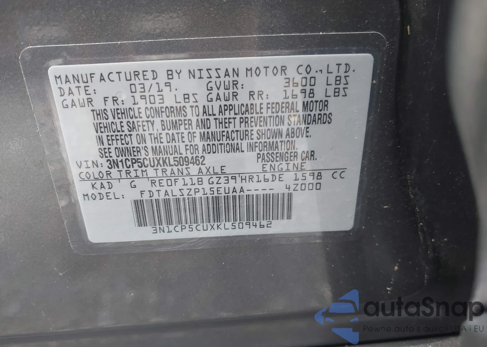 VIN: 3N1CP5CUXKL509462