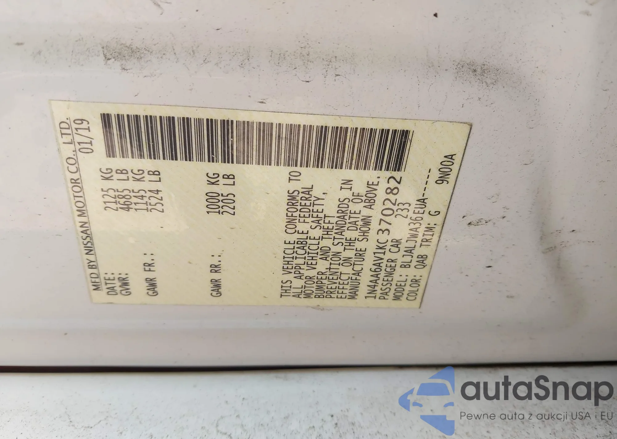 VIN: 1N4AA6AV1KC370282