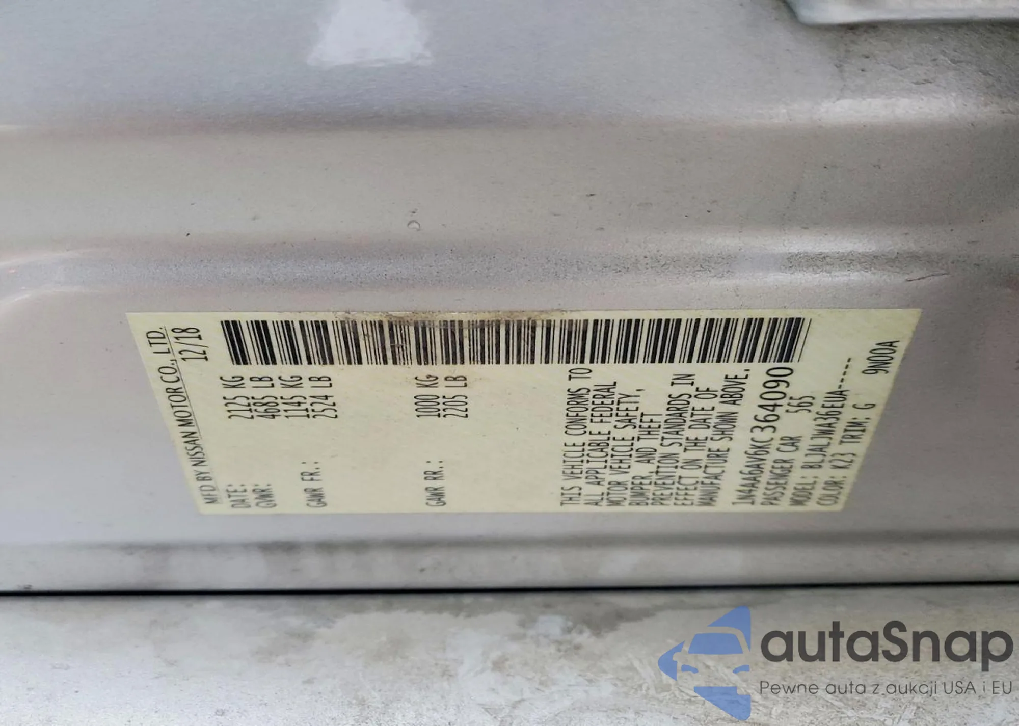 VIN: 1N4AA6AV6KC364090