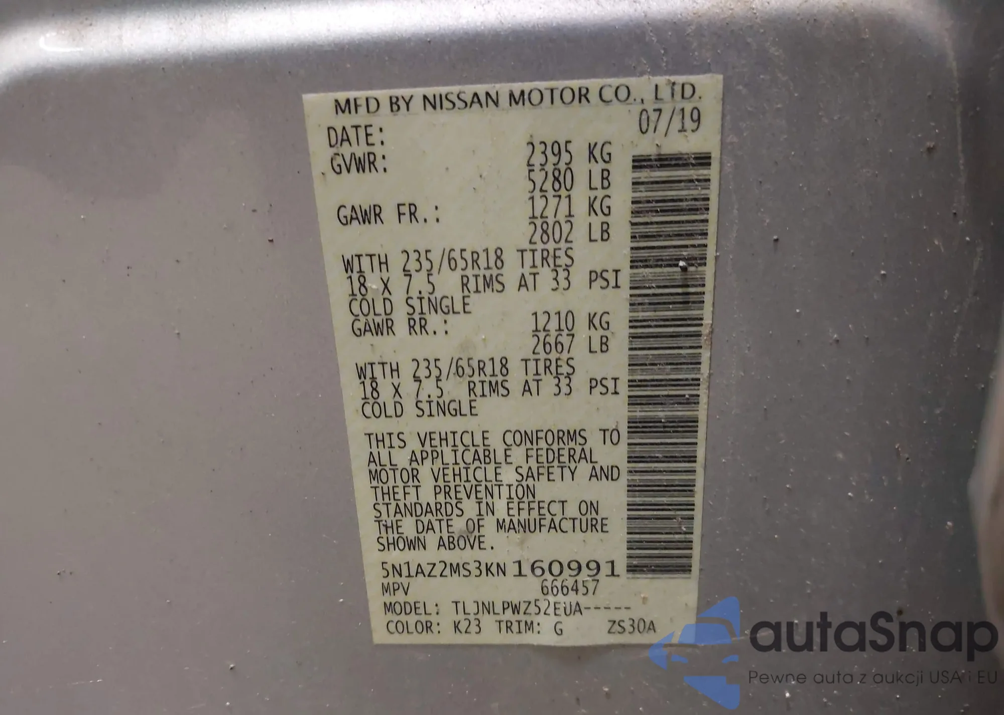 VIN: 5N1AZ2MS3KN160991