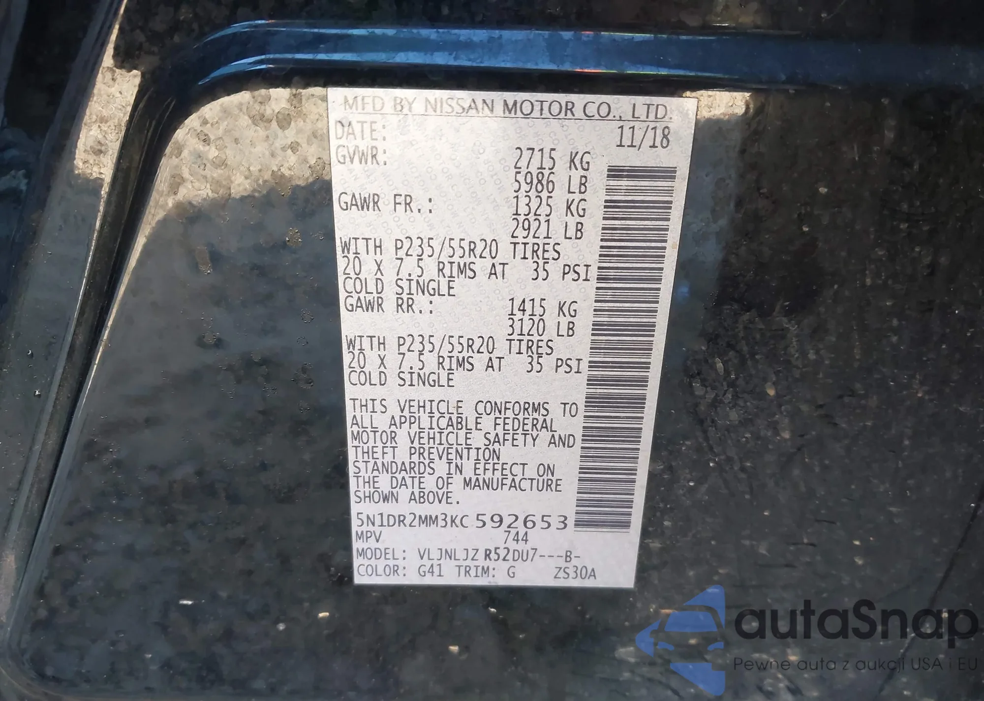VIN: 5N1DR2MM3KC592653