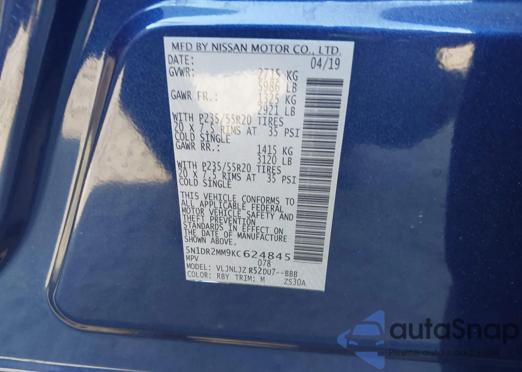 VIN: 5N1DR2MM9KC624845