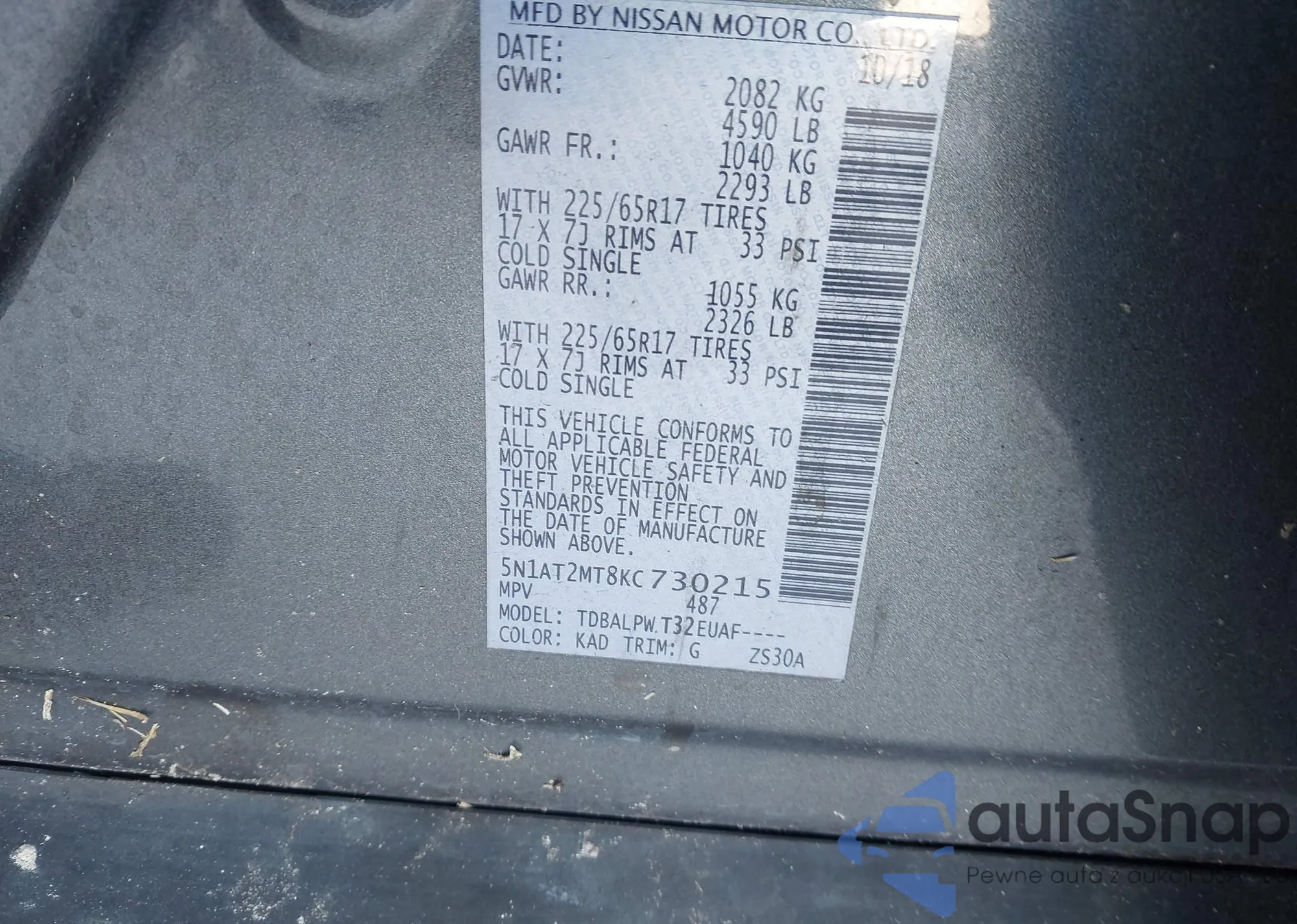 VIN: 5N1AT2MT8KC730215
