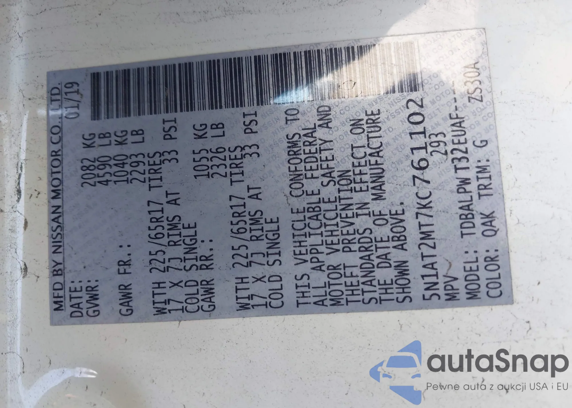 Автомобиль Nissan Rogue 2019 (VIN 5N1AT2MT7KC761102) ранее не участвовал в торгах. Документы чистые, пробег соответствует или ниже среднего по рынку. Продаётся страховой компанией — рекомендуем покупку. Доставка в порт займет около 6–8 недель.