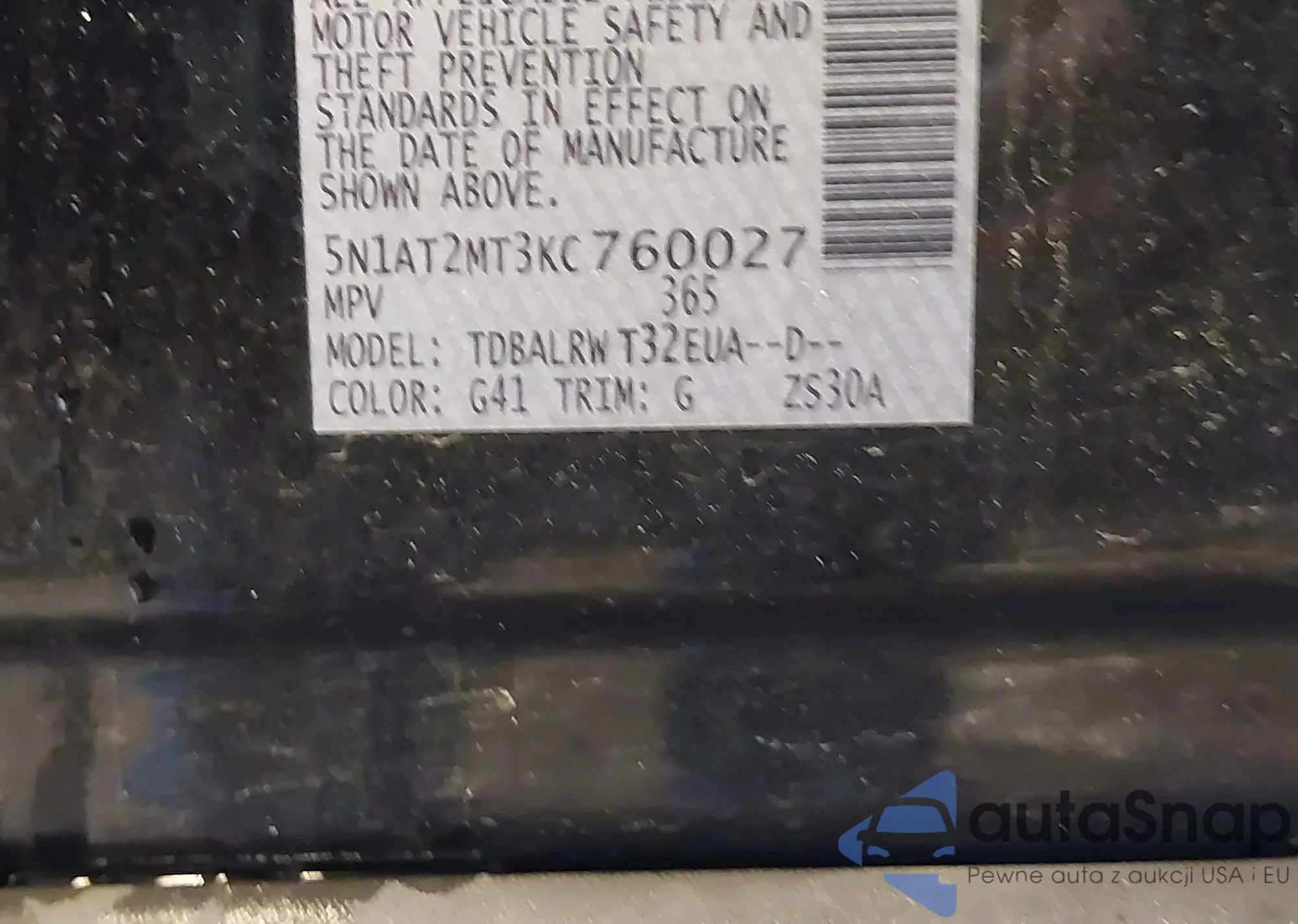 VIN: 5N1AT2MT3KC760027