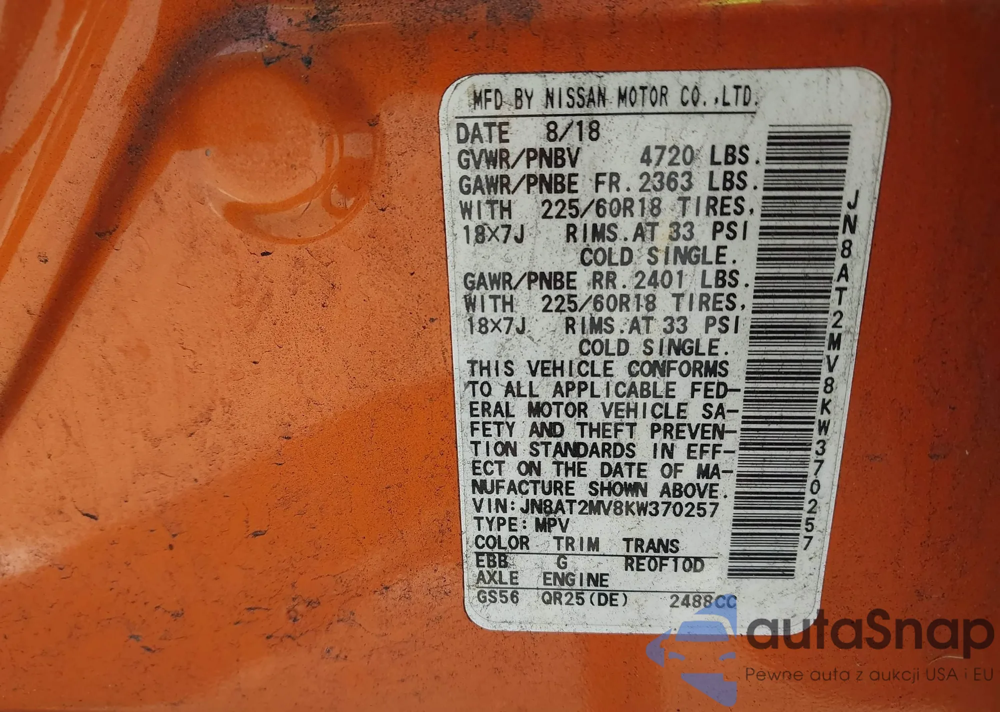 VIN: JN8AT2MV8KW370257