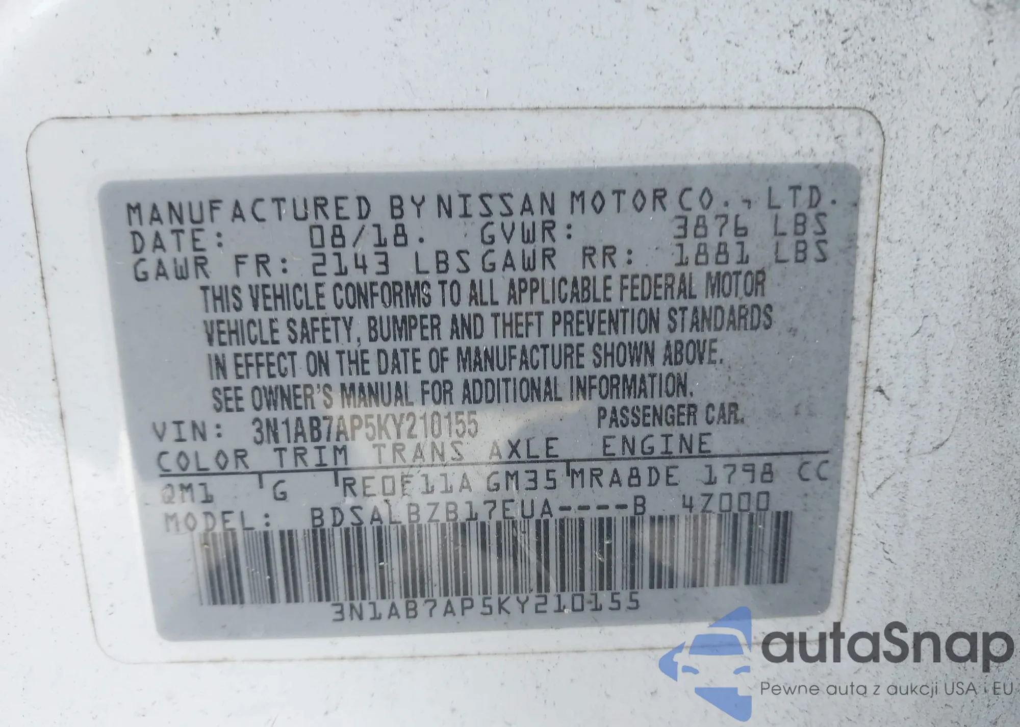 VIN: 3N1AB7AP5KY210155