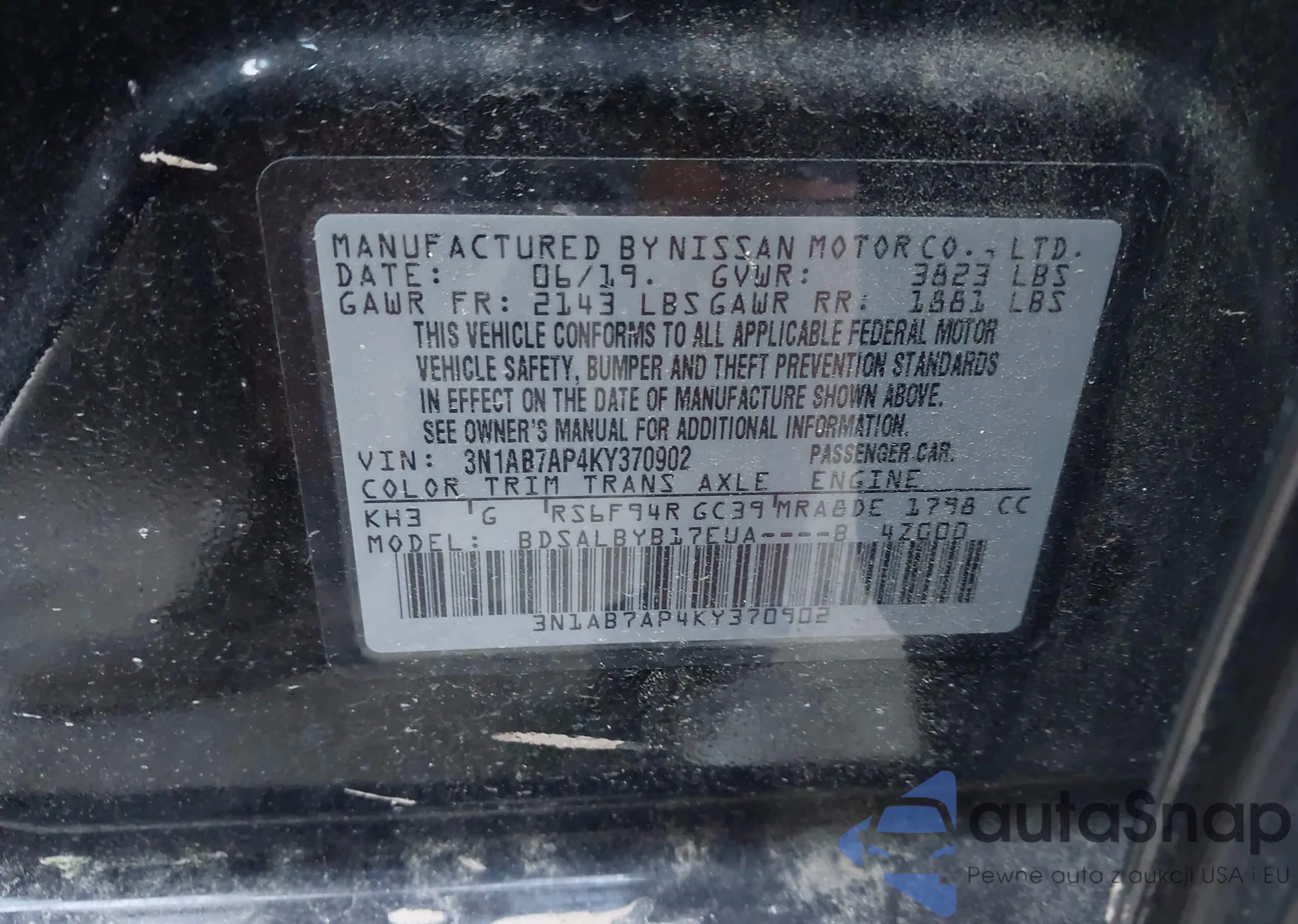 VIN: 3N1AB7AP4KY370902