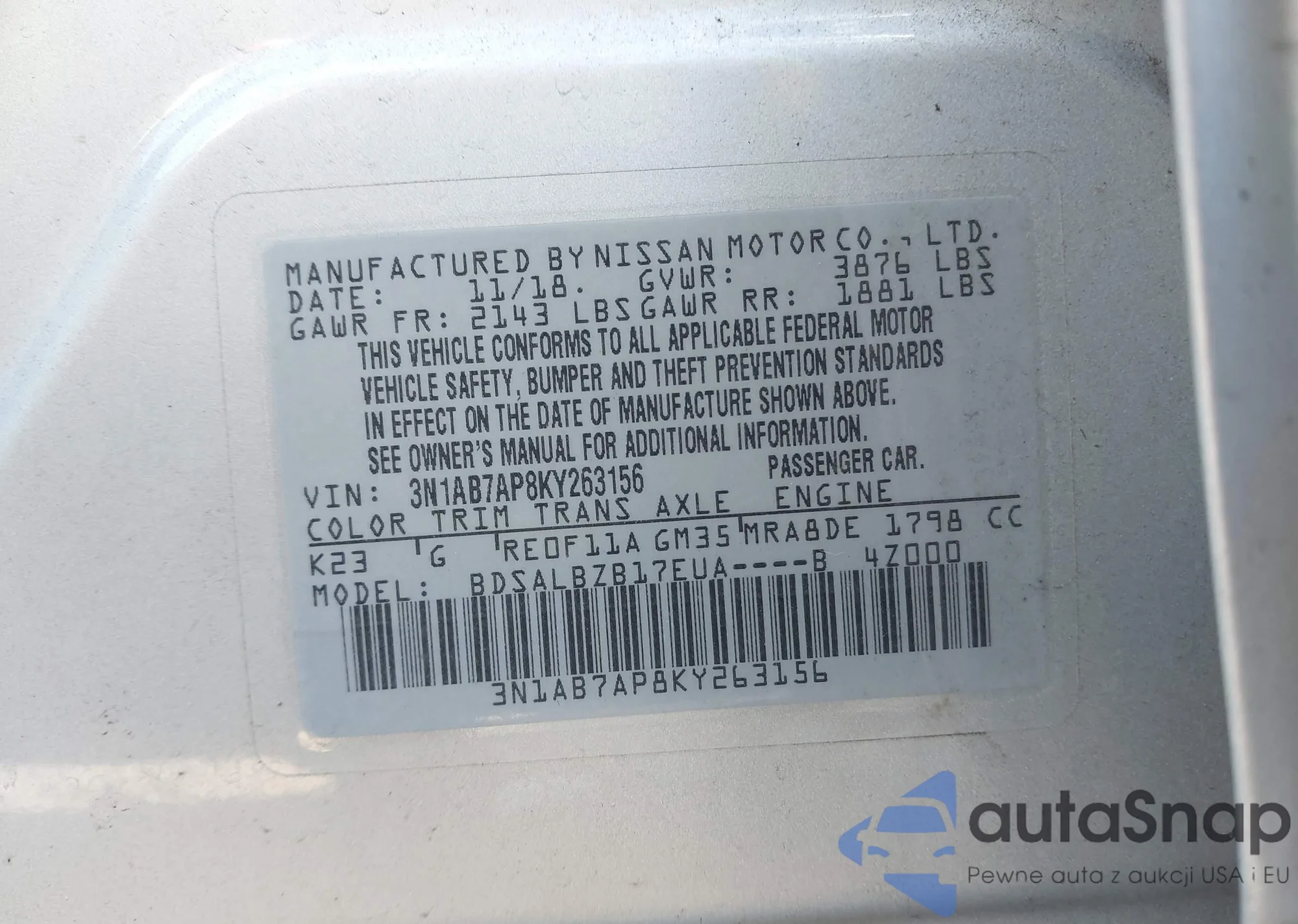 VIN: 3N1AB7AP8KY263156
