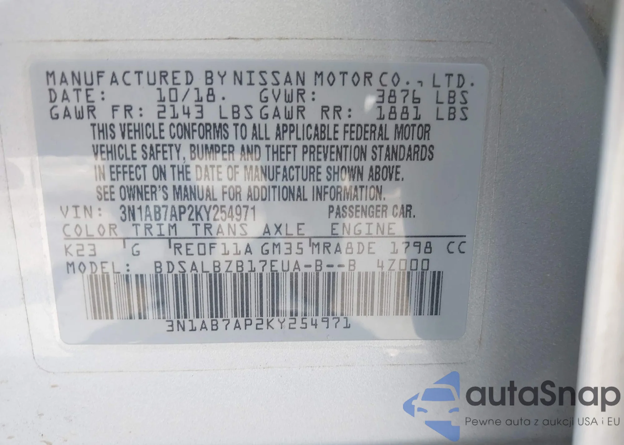 VIN: 3N1AB7AP2KY254971