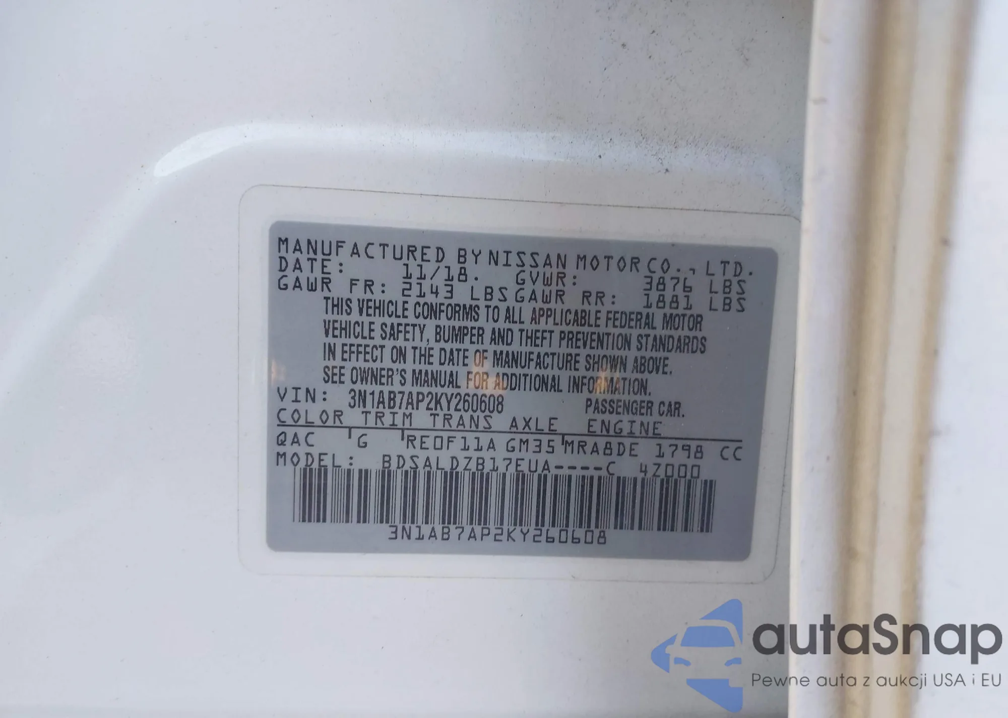 VIN: 3N1AB7AP2KY260608