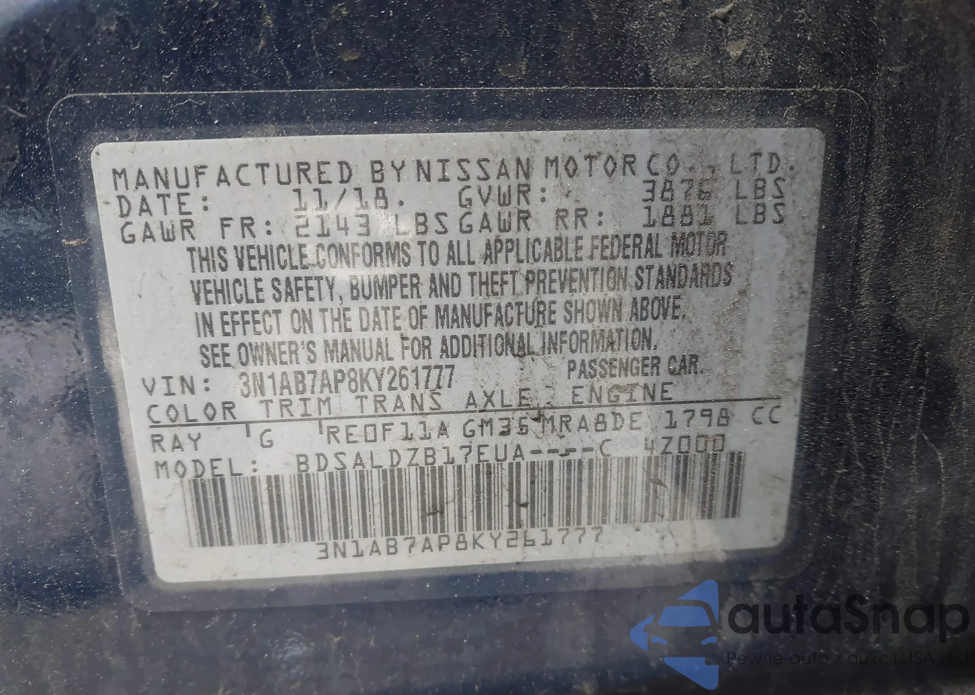 VIN: 3N1AB7AP8KY261777