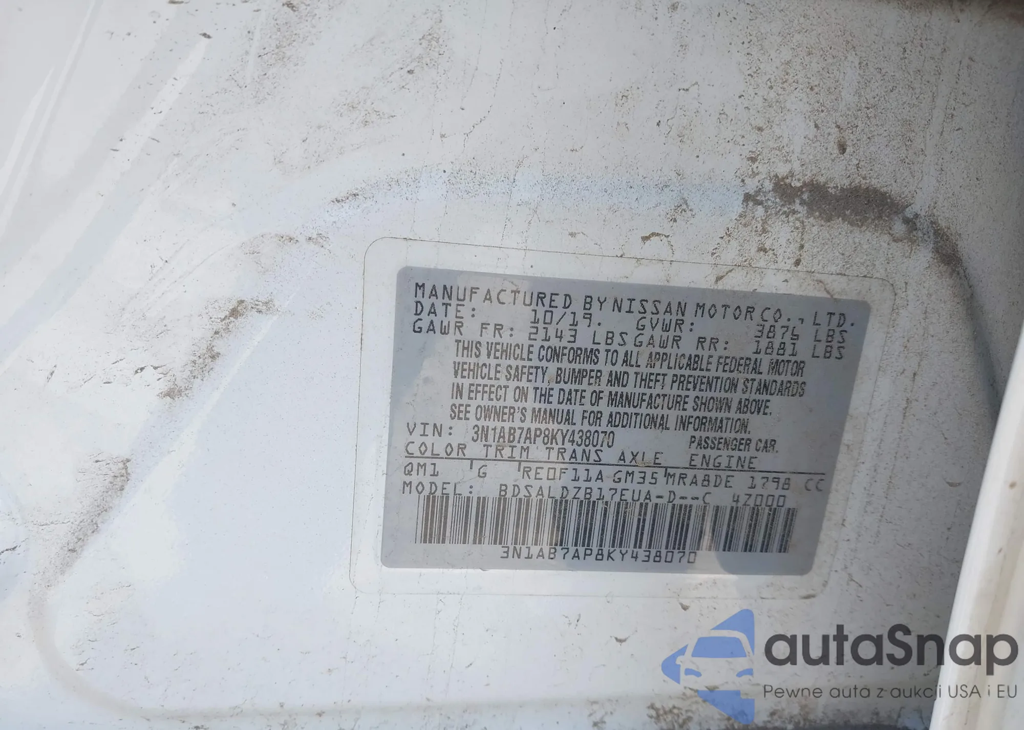 • VIN: 3N1AB7AP8KY438070
