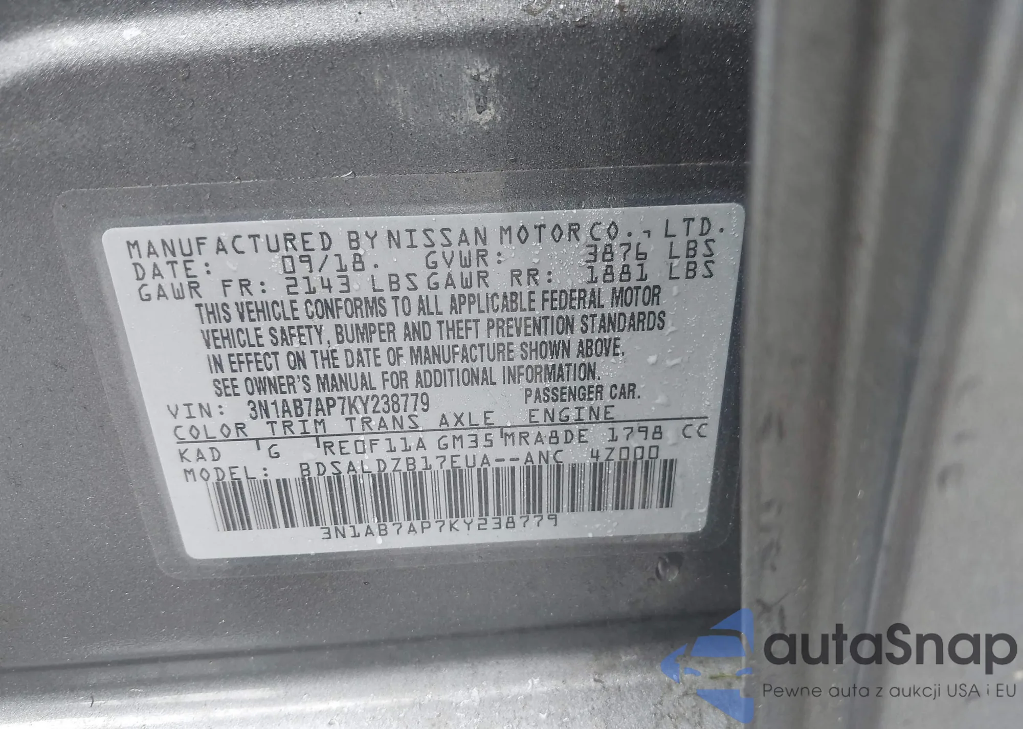 VIN: 3N1AB7AP7KY238779