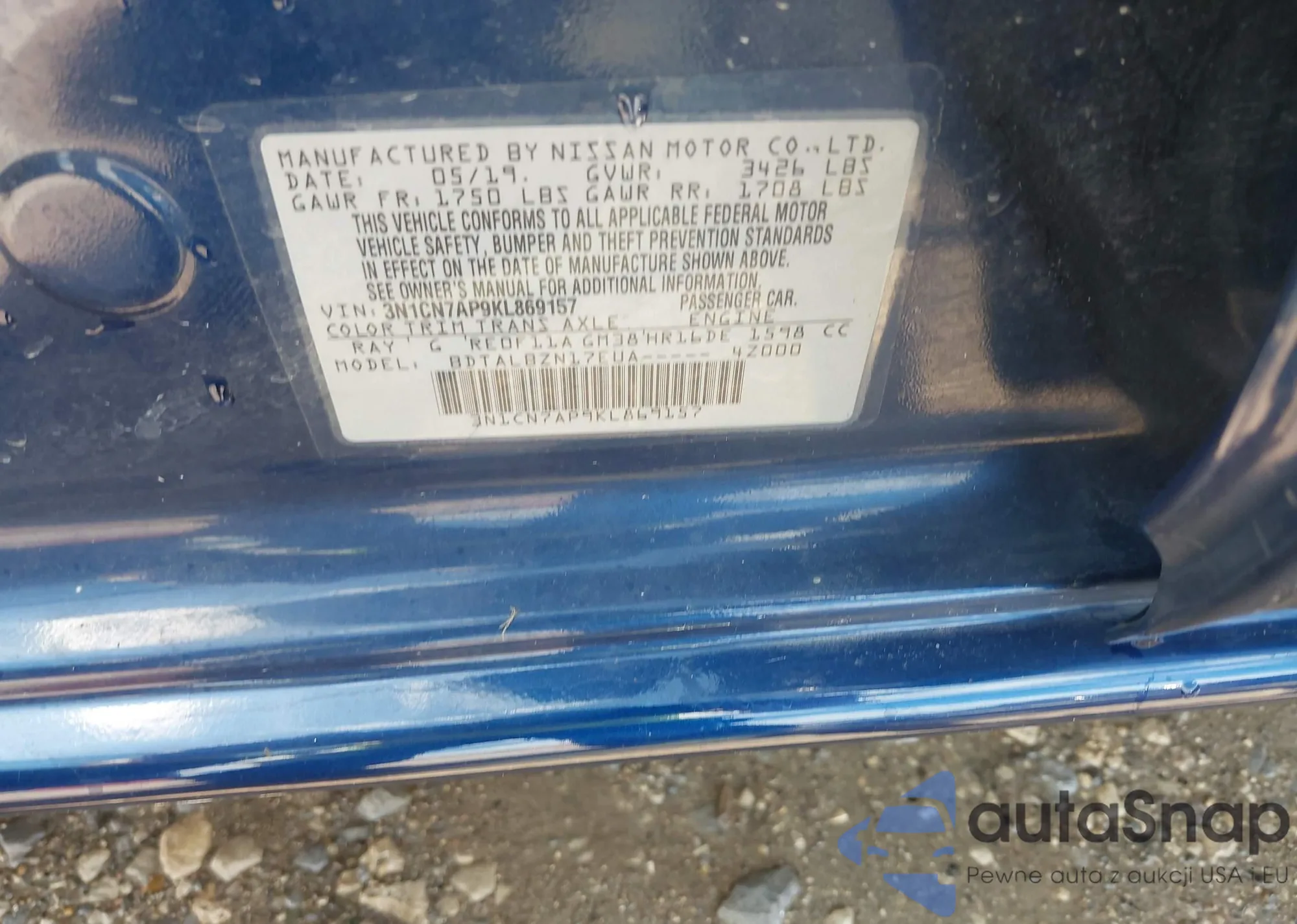 VIN: 3N1CN7AP9KL869157