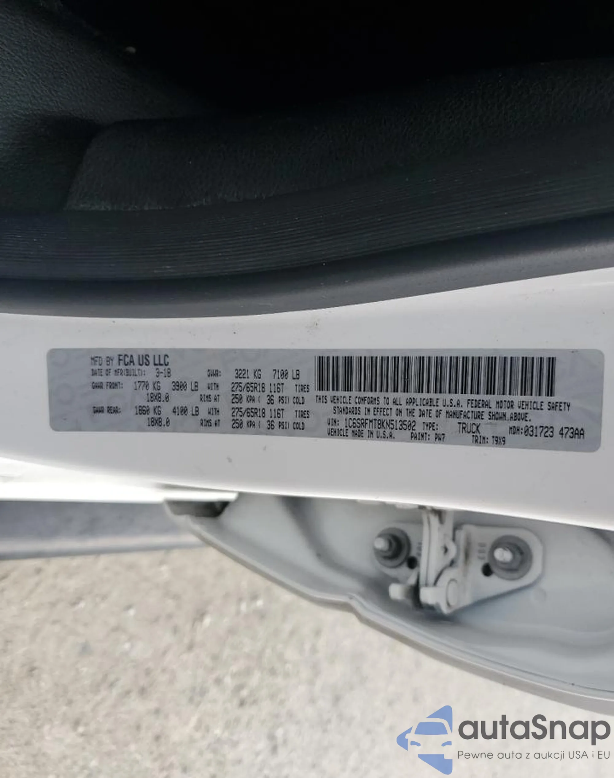 VIN: 1C6SRFMT8KN513502