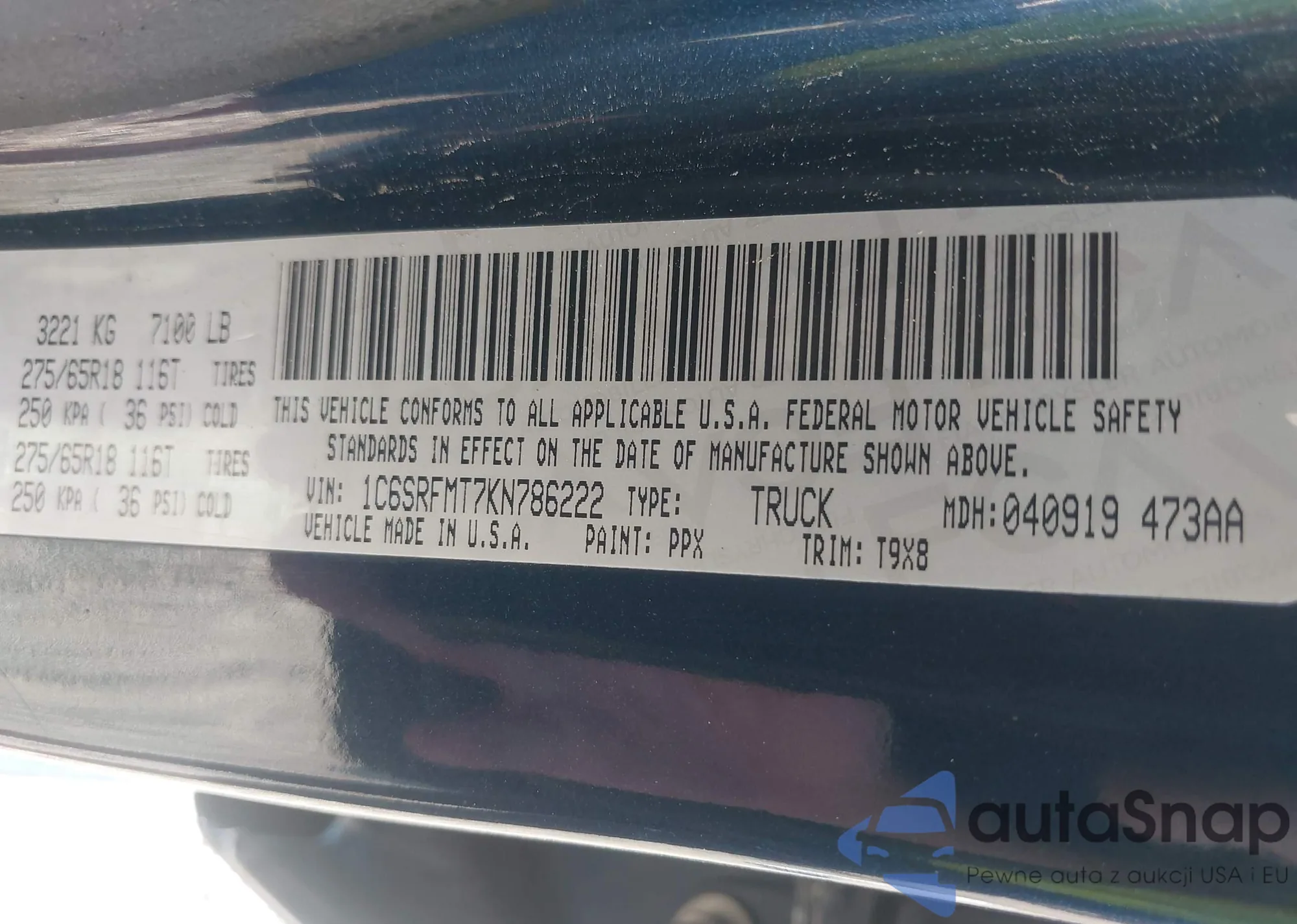 VIN: 1C6SRFMT7KN786222