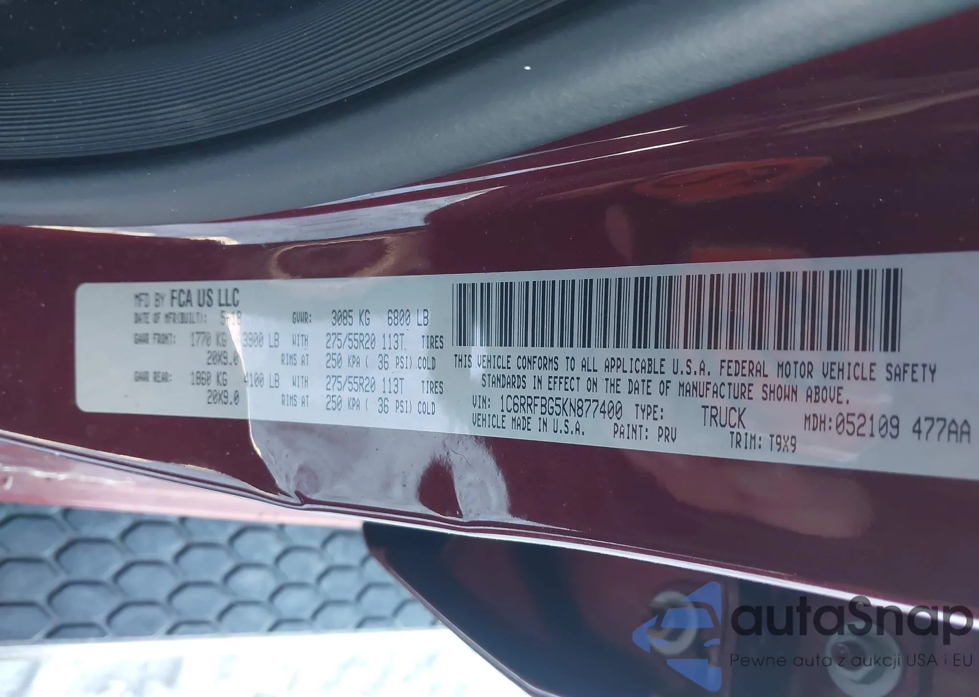 VIN: 1C6RRFBG5KN877400
