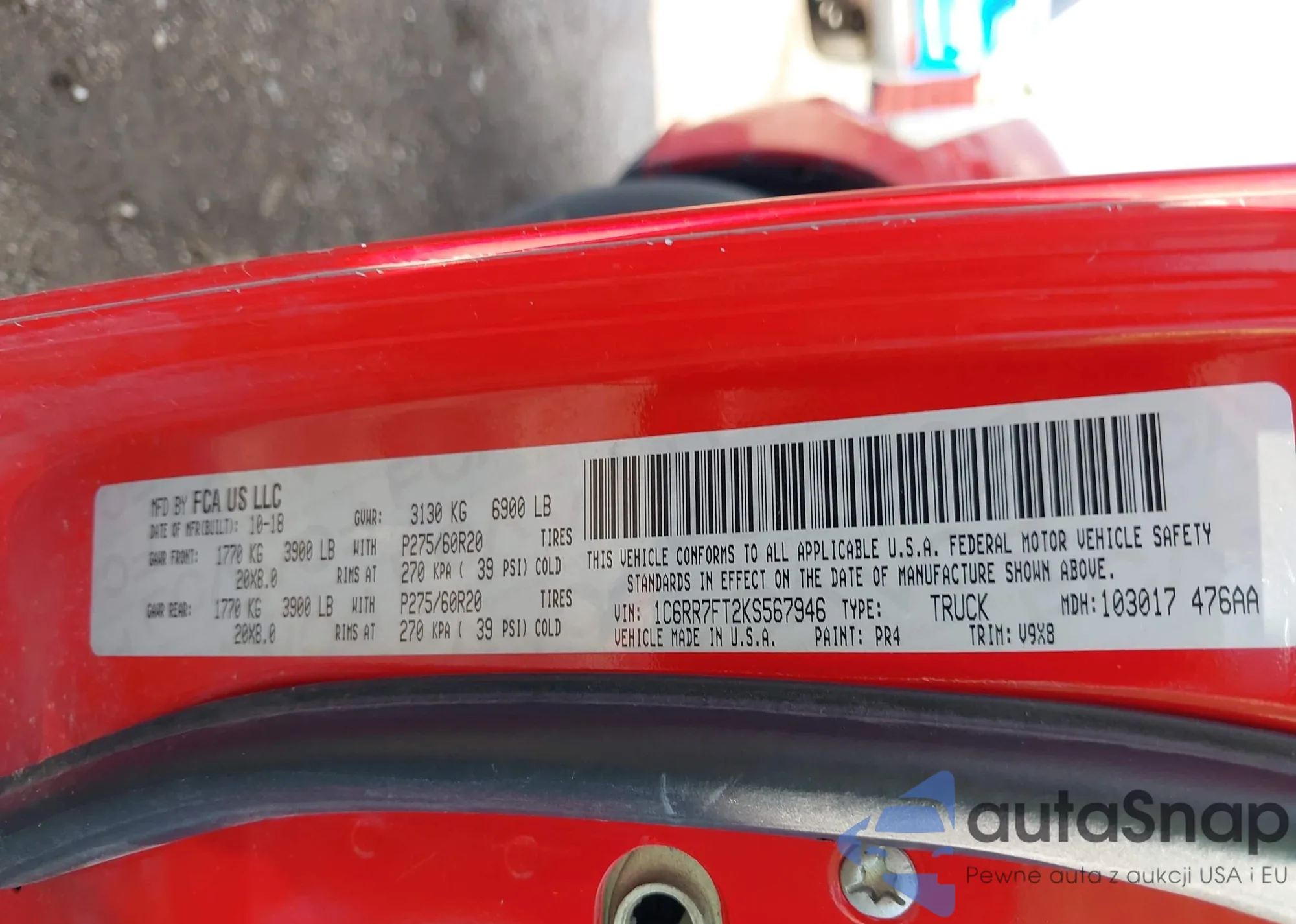 VIN: 1C6RR7FT2KS567946