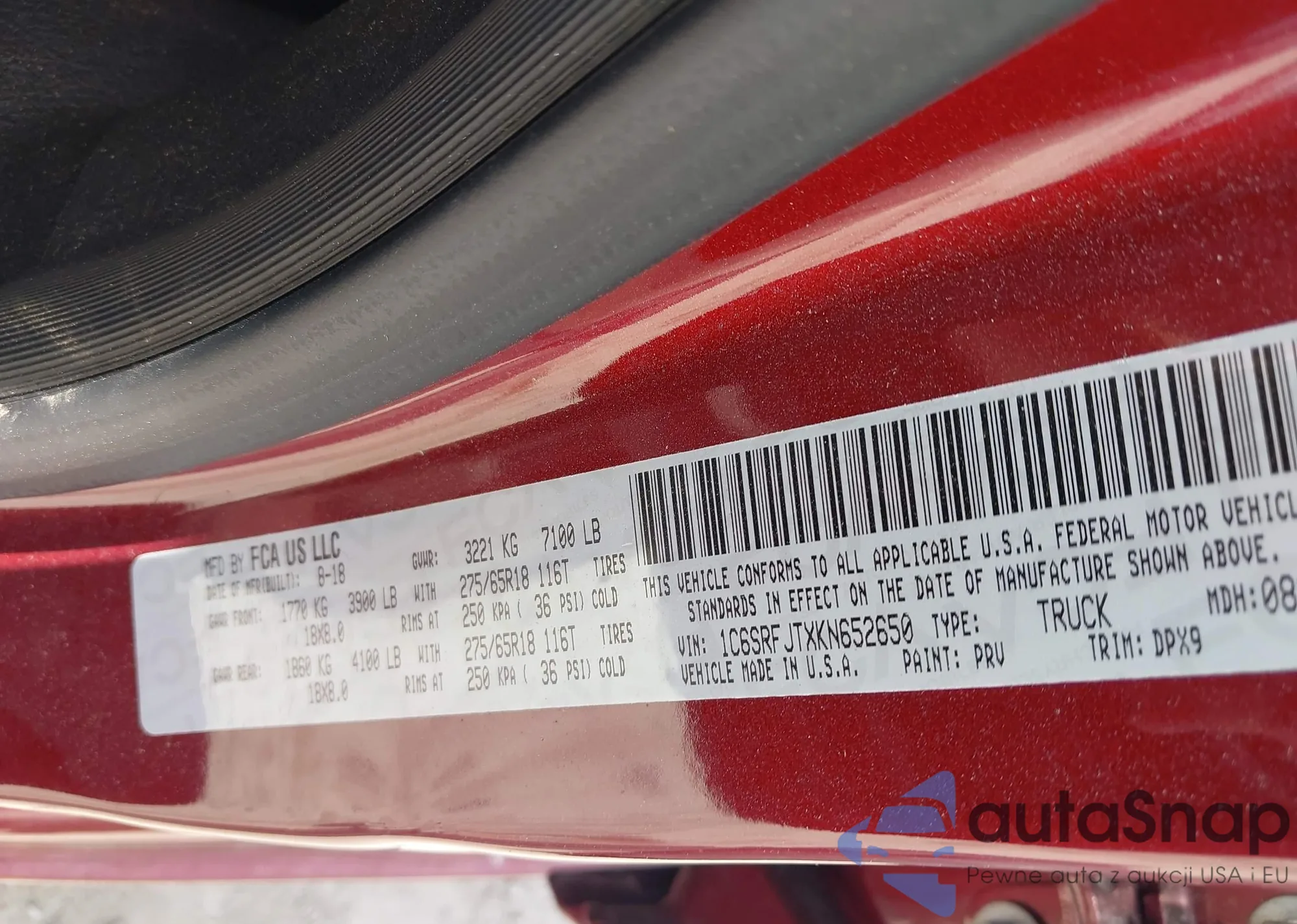 VIN: 1C6SRFJTXKN652650