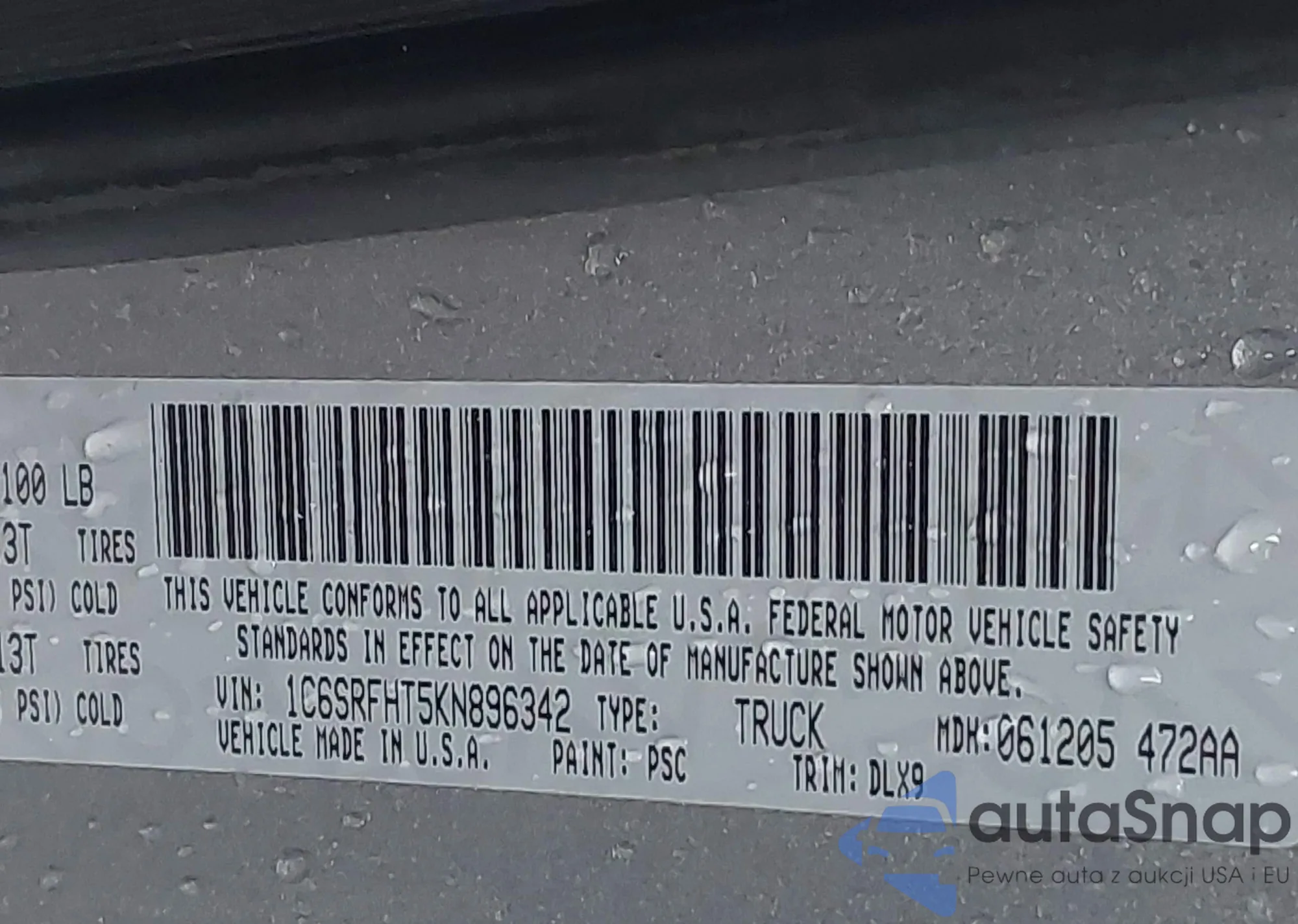 VIN: 1C6SRFHT5KN896342