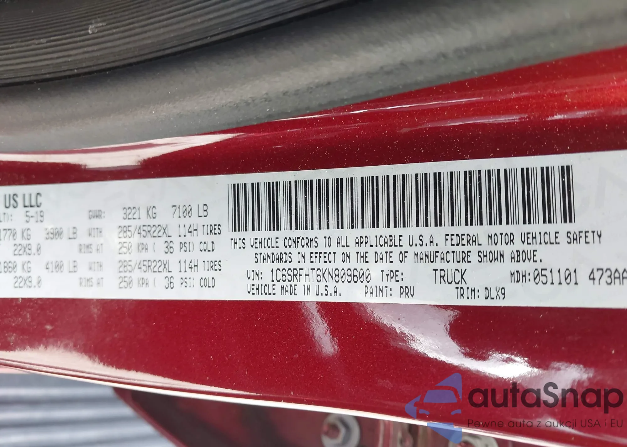 VIN: 1C6SRFHT6KN809600