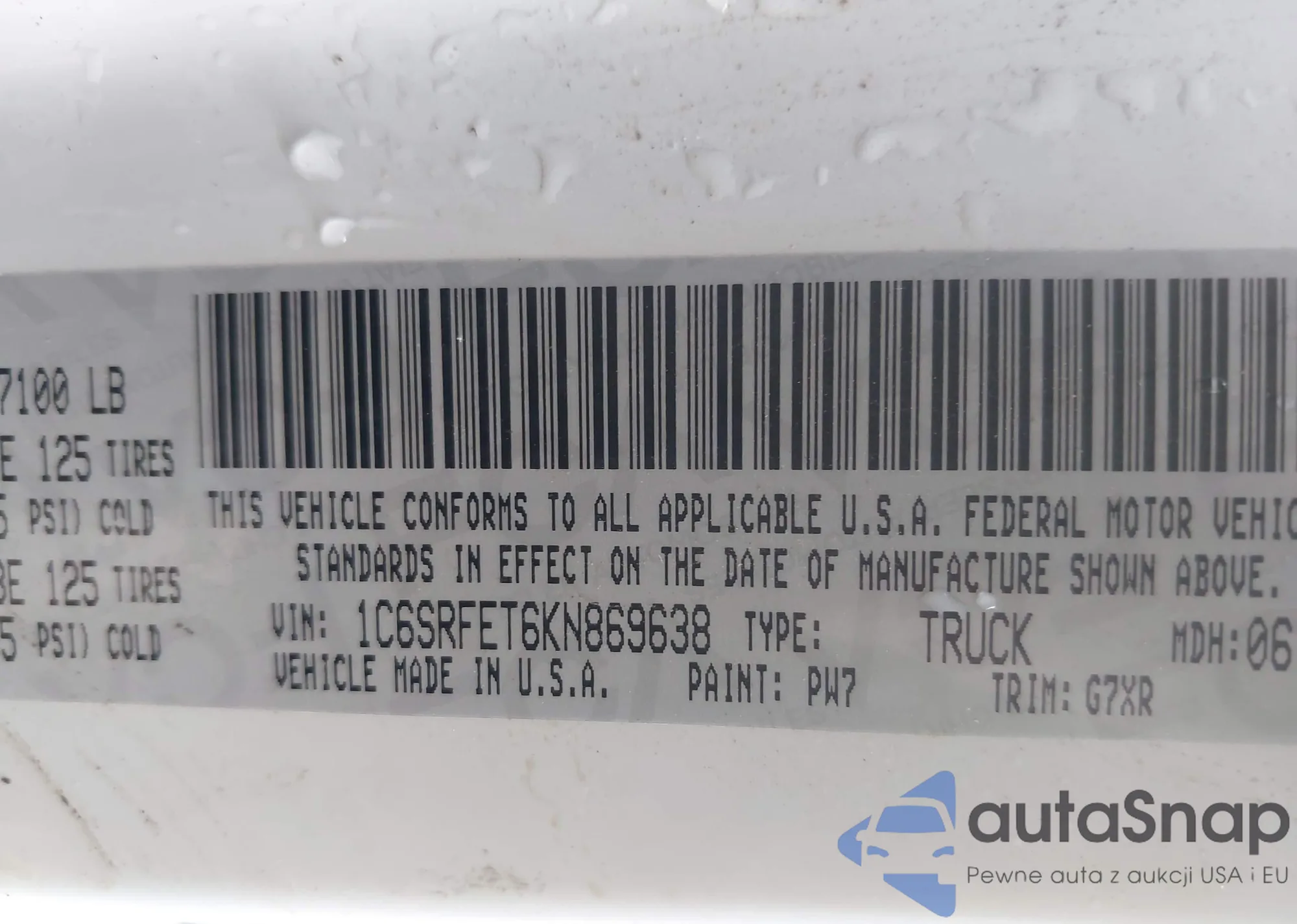 VIN: 1C6SRFET6KN869638