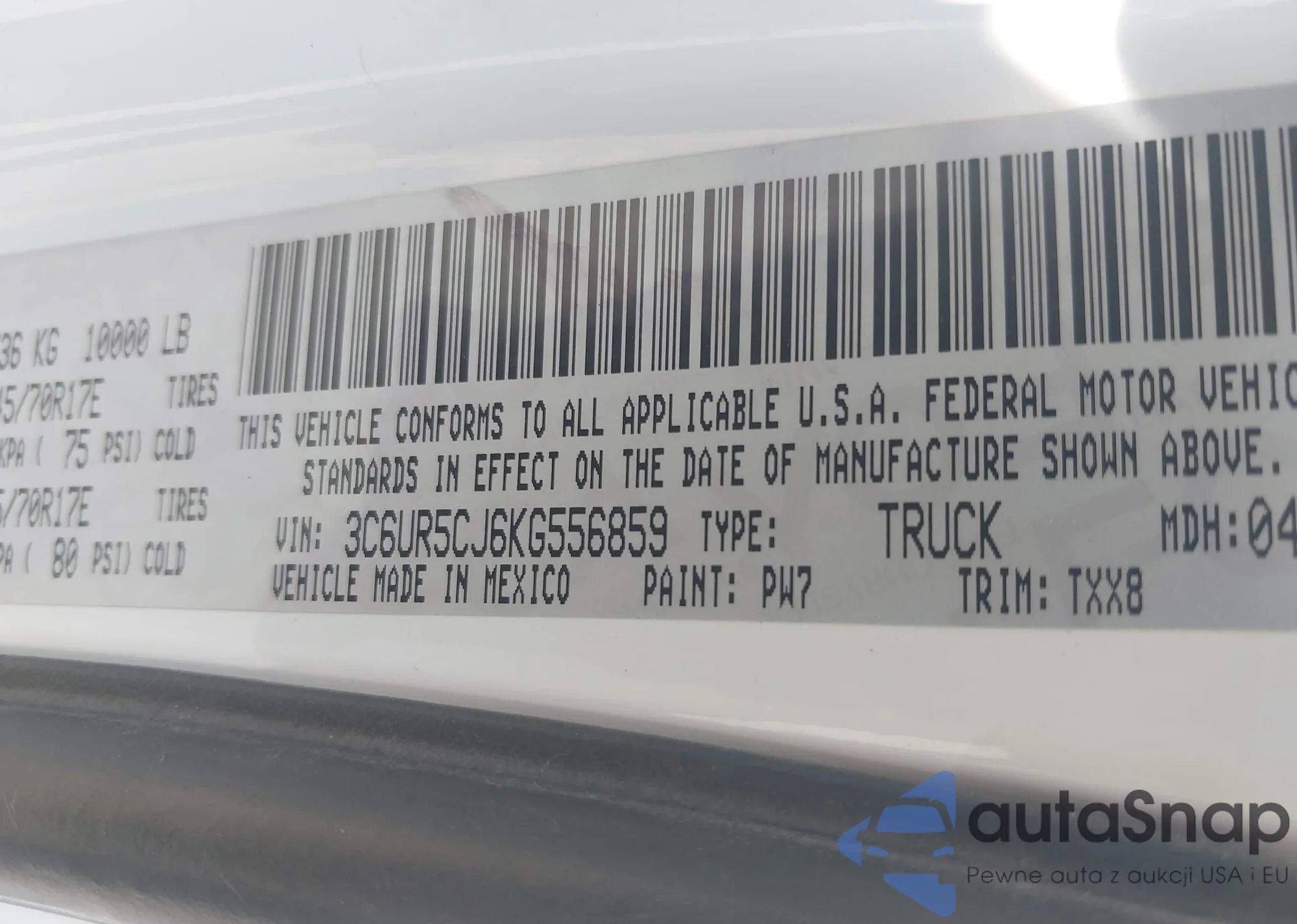 VIN: 3C6UR5CJ6KG556859