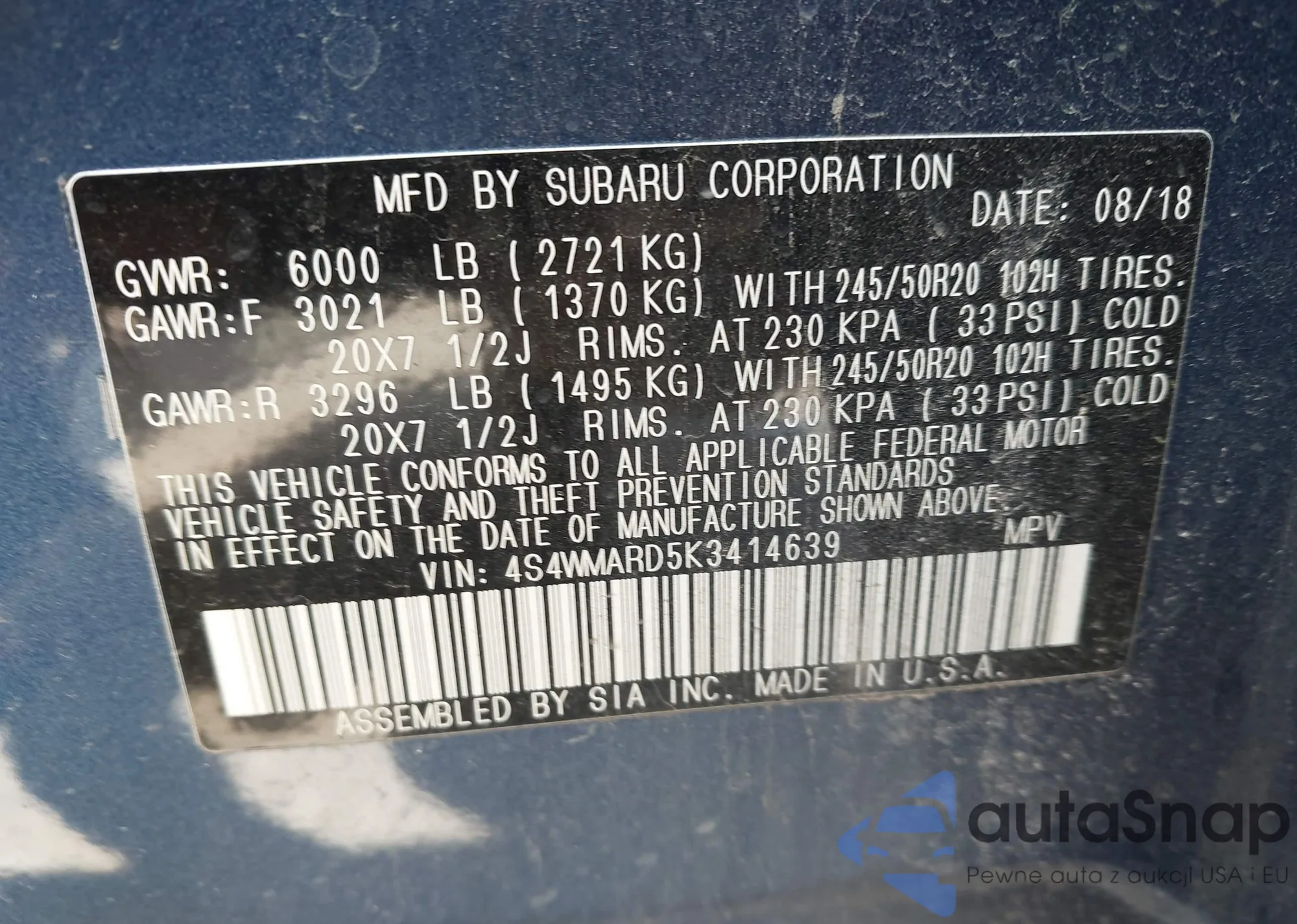 VIN: 4S4WMARD5K3414639