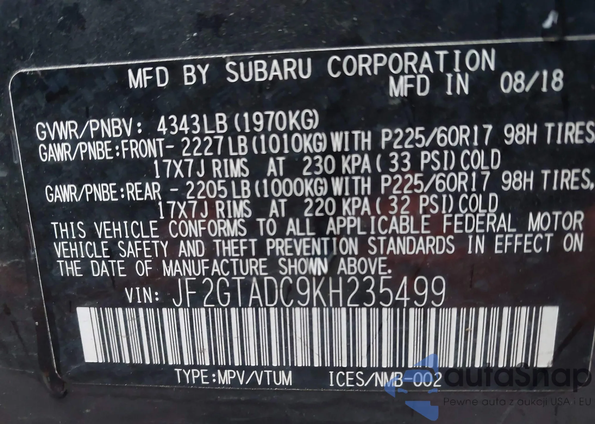 Автомобиль Subaru XV 2019 (VIN JF2GTADC9KH235499) ранее не участвовал в торгах. Документы чистые, пробег соответствует или ниже среднего по рынку. Продаётся страховой компанией — рекомендуем покупку. Доставка в порт займет около 6–8 недель.