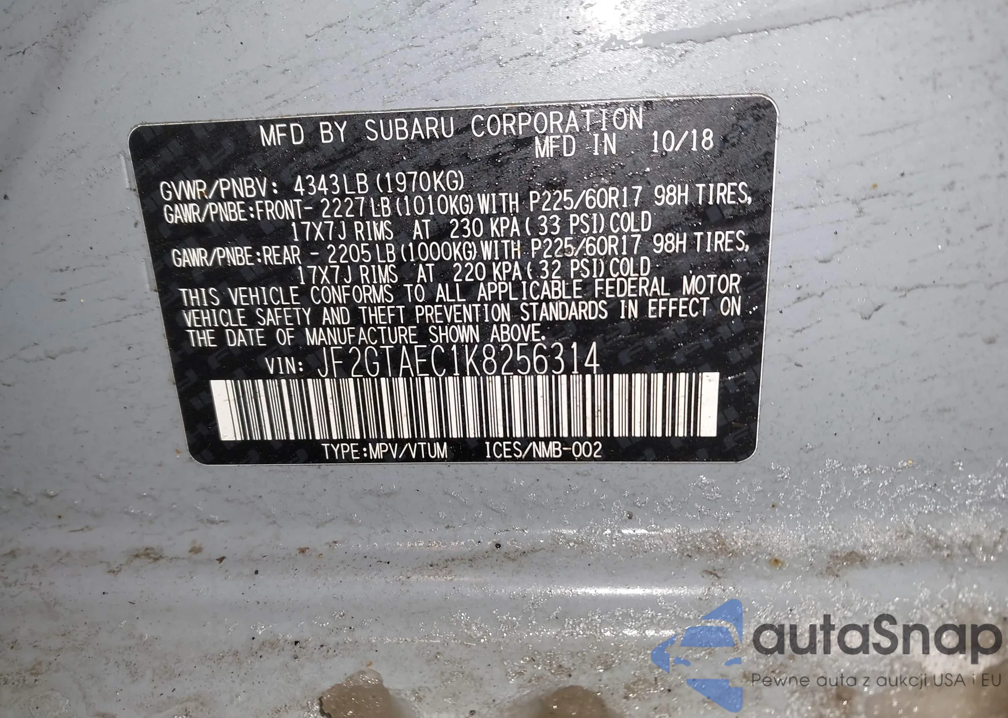 VIN: JF2GTAEC1K8256314