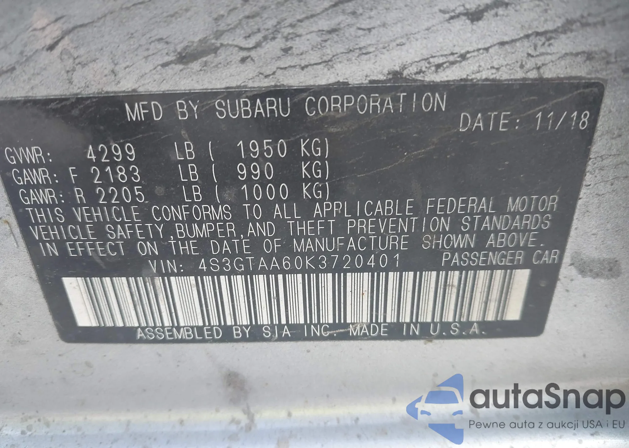VIN: 4S3GTAA60K3720401