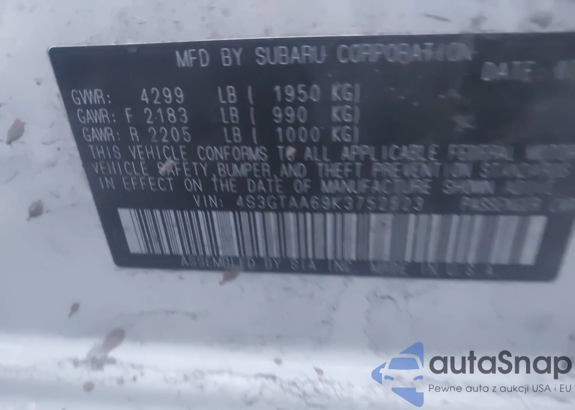 • VIN: 4S3GTAA69K3752523