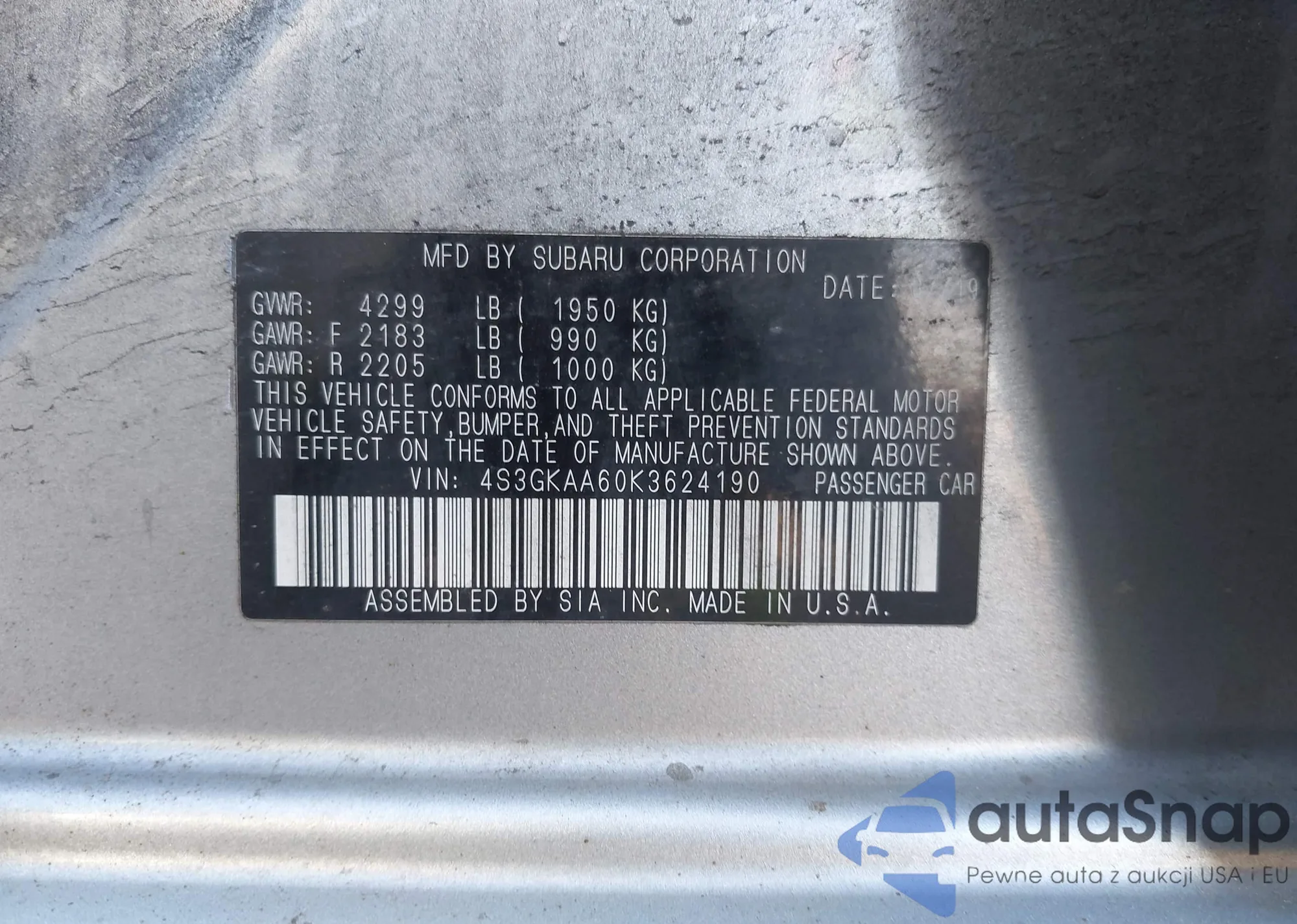 VIN: 4S3GKAA60K3624190