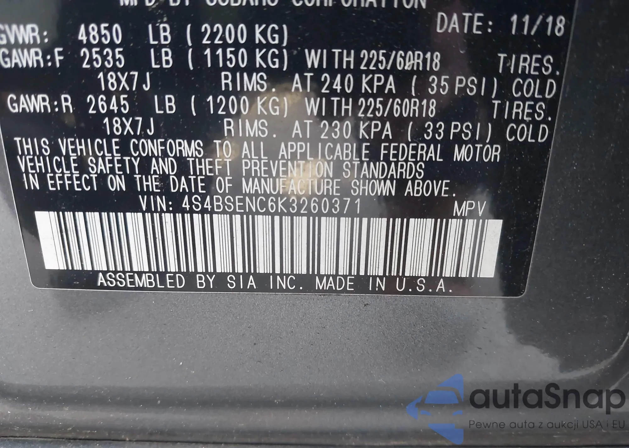 VIN: 4S4BSENC6K3260371