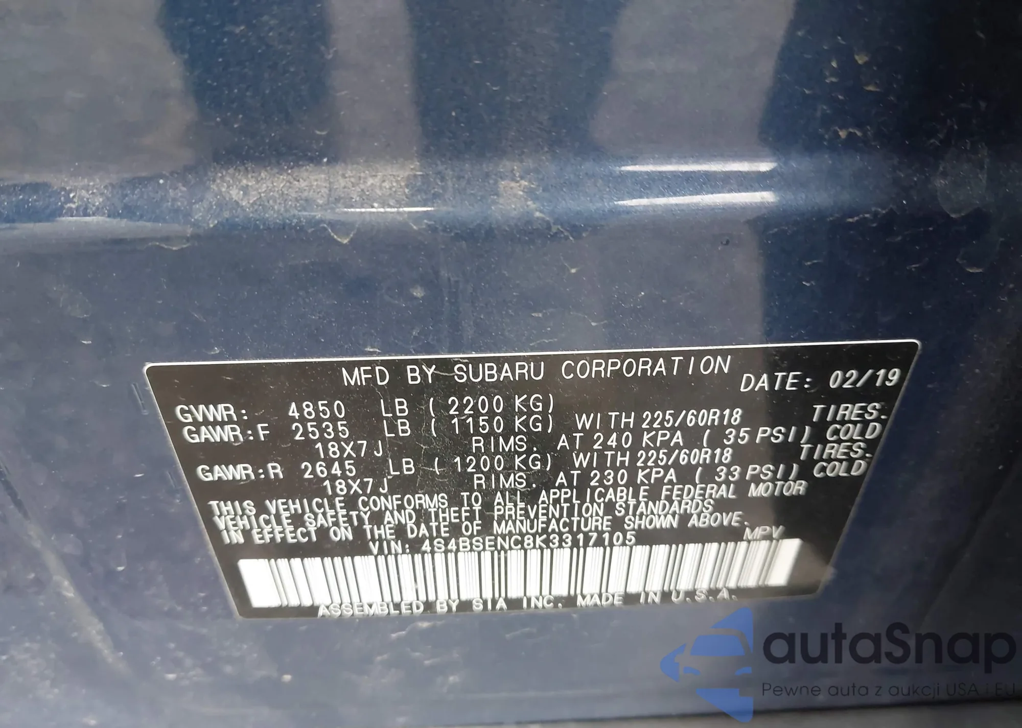 VIN: 4S4BSENC8K3317105