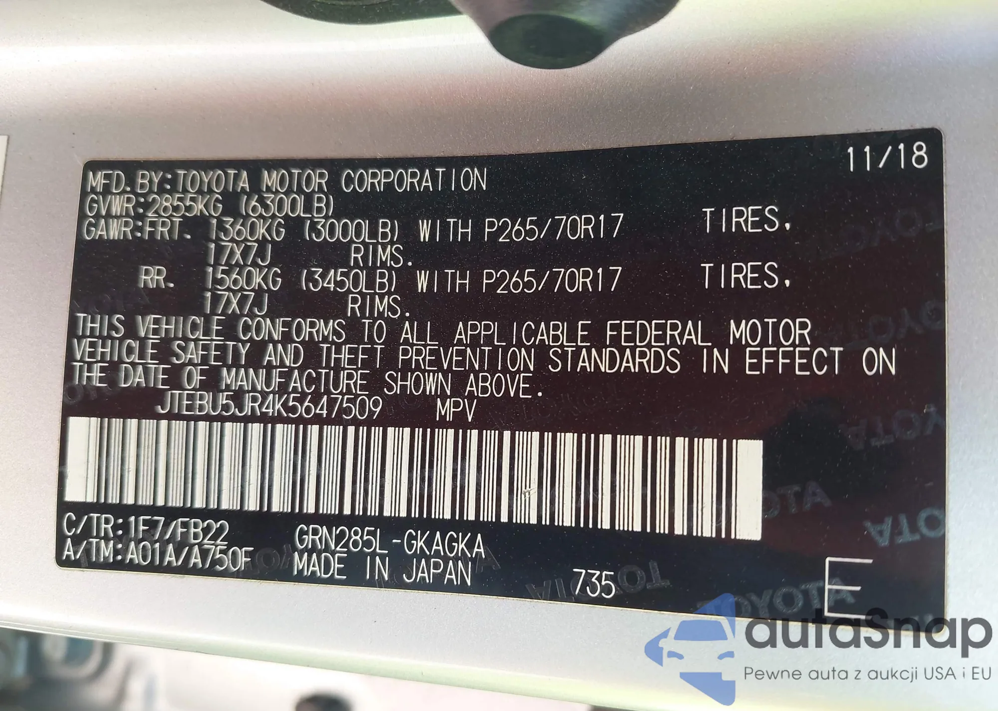 VIN: JTEBU5JR4K5647509
