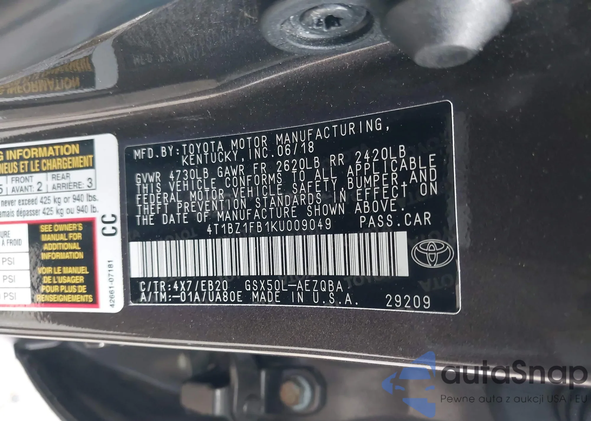 Автомобиль Toyota Avalon 2019 (VIN 4T1BZ1FB1KU009049) ранее не участвовал в торгах. Документы чистые, пробег соответствует или ниже среднего по рынку. Продаётся страховой компанией — рекомендуем покупку. Доставка в порт займет около 6–8 недель.
