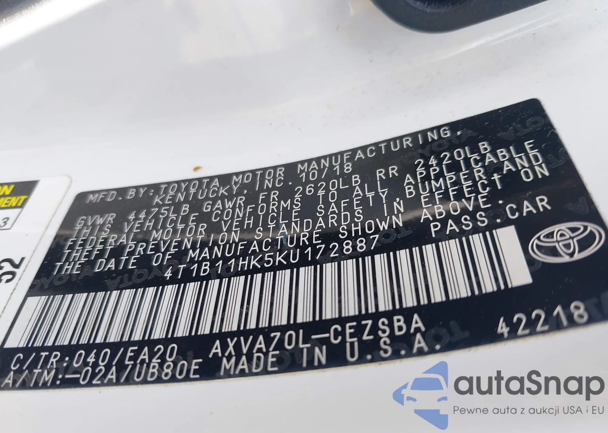 VIN: 4T1B11HK5KU172887
