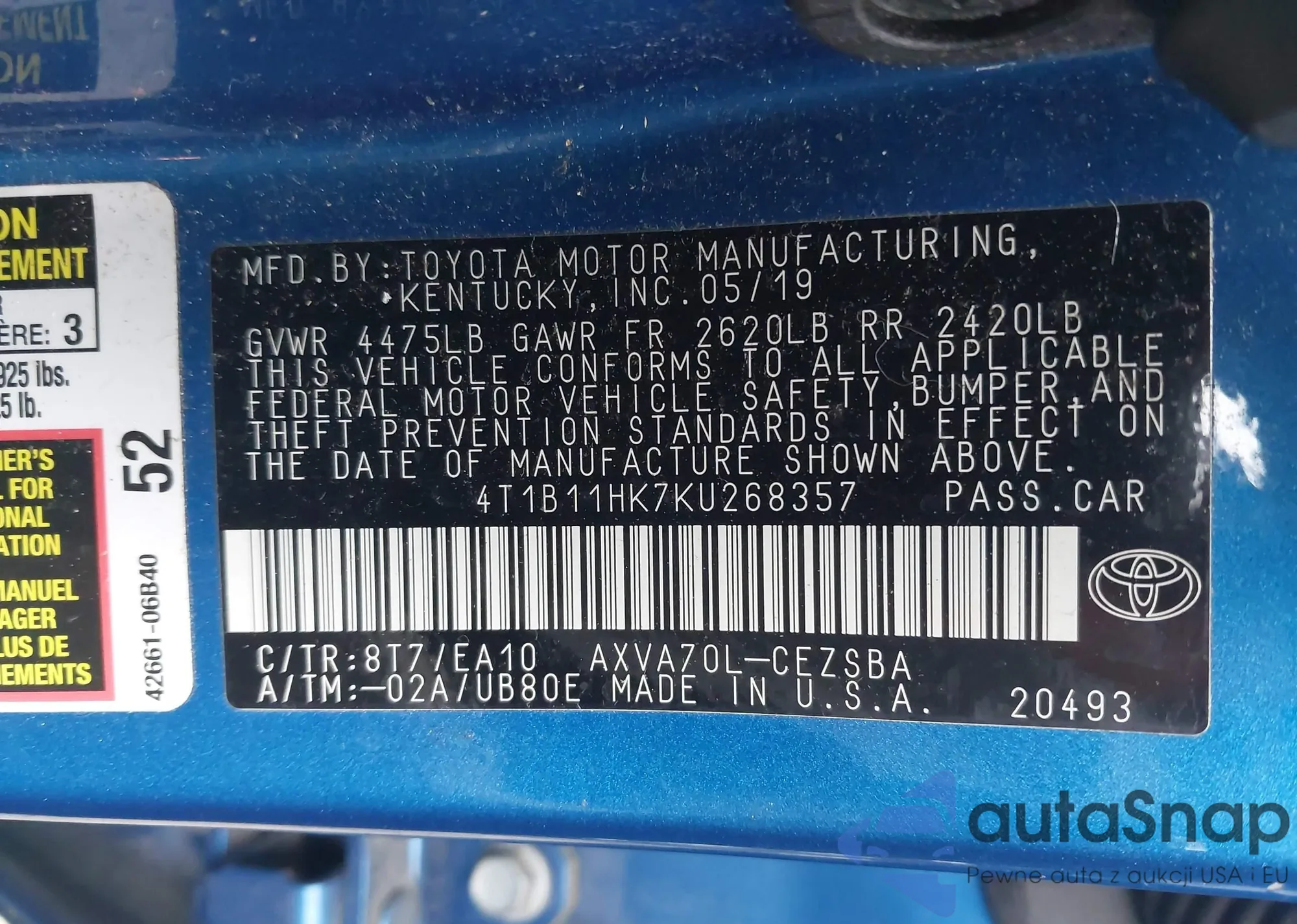 VIN: 4T1B11HK7KU268357