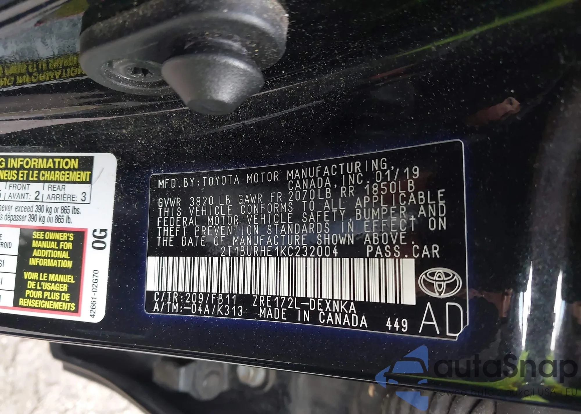 VIN: 2T1BURHE1KC232004