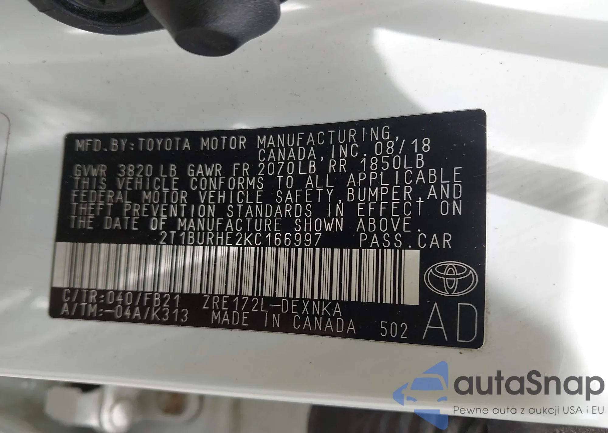 VIN: 2T1BURHE2KC166997