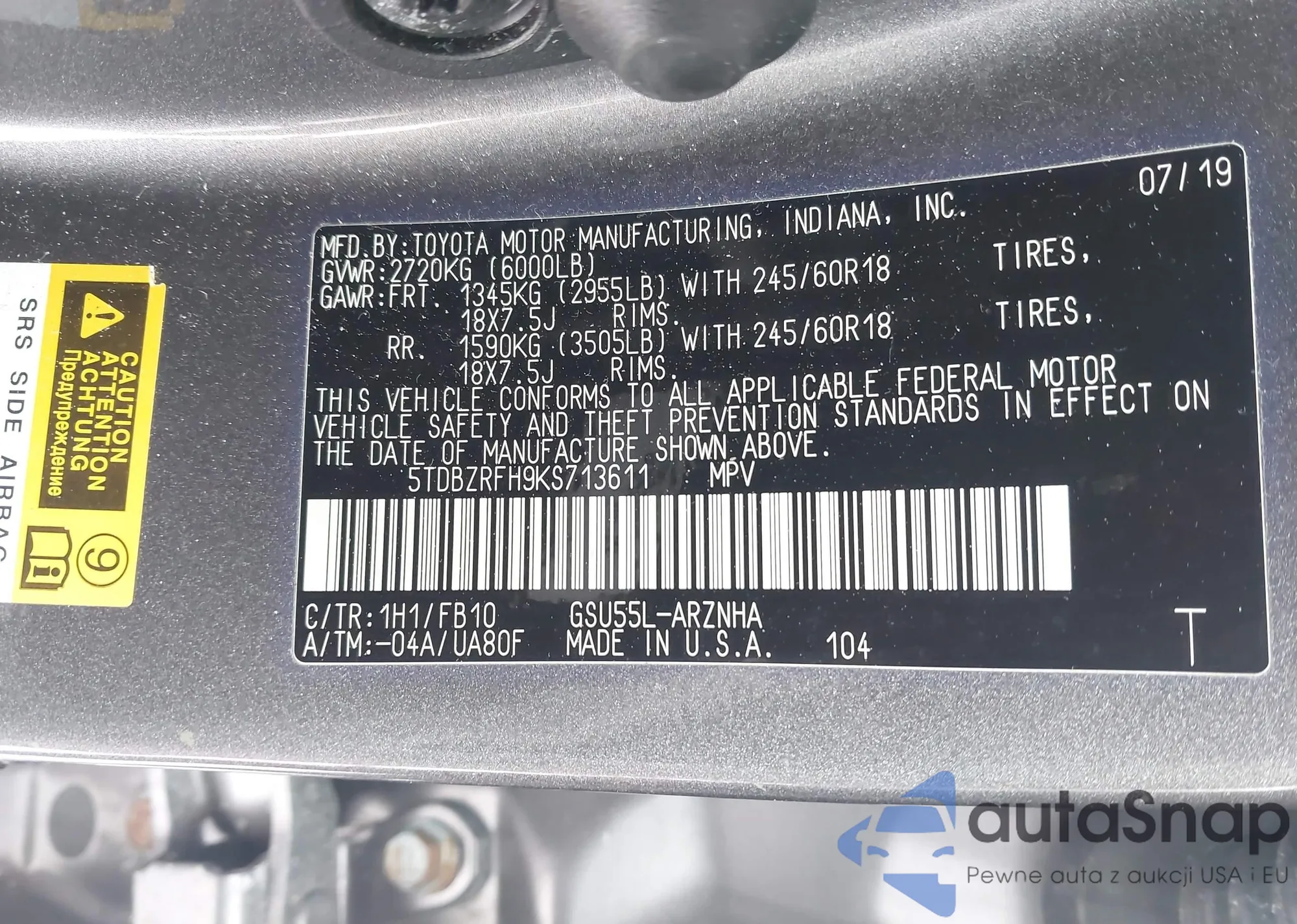Автомобиль Toyota Highlander 2019 (VIN 5TDBZRFH9KS713611) ранее не участвовал в торгах. Документы чистые, пробег соответствует или ниже среднего по рынку. Продаётся страховой компанией — рекомендуем покупку. Доставка в порт займет около 6–8 недель.