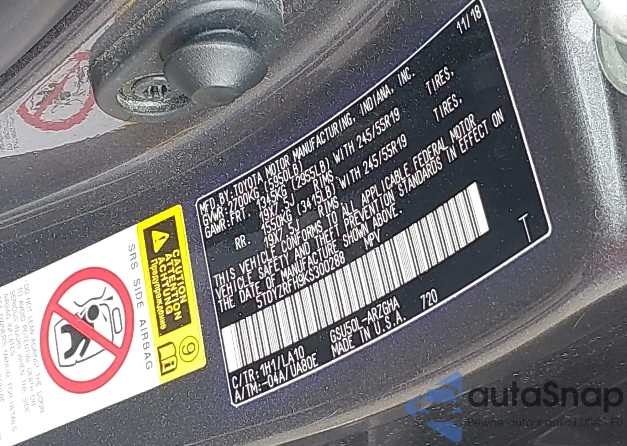 VIN: 5TDYZRFH9KS300288