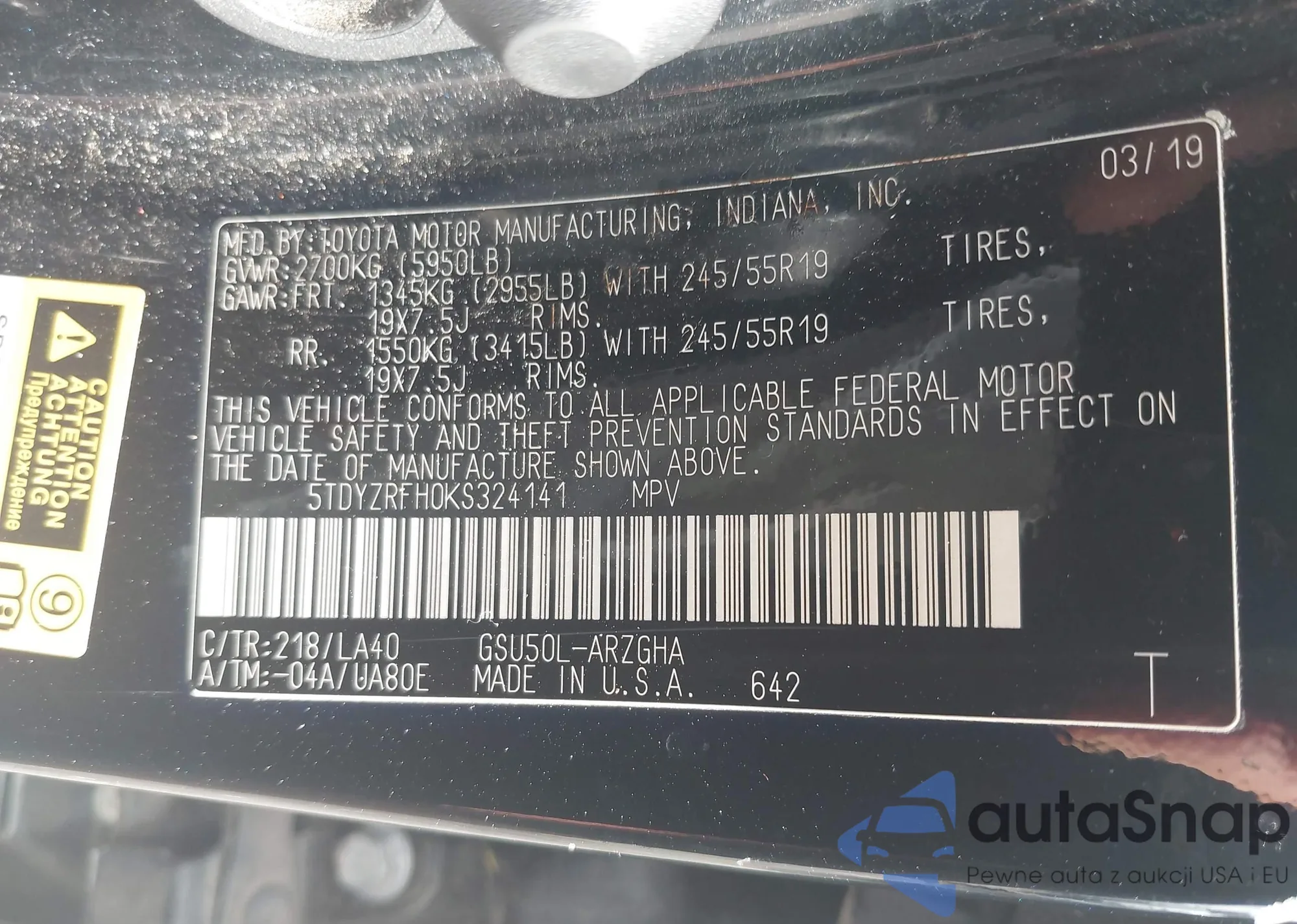 VIN: 5TDYZRFH0KS324141