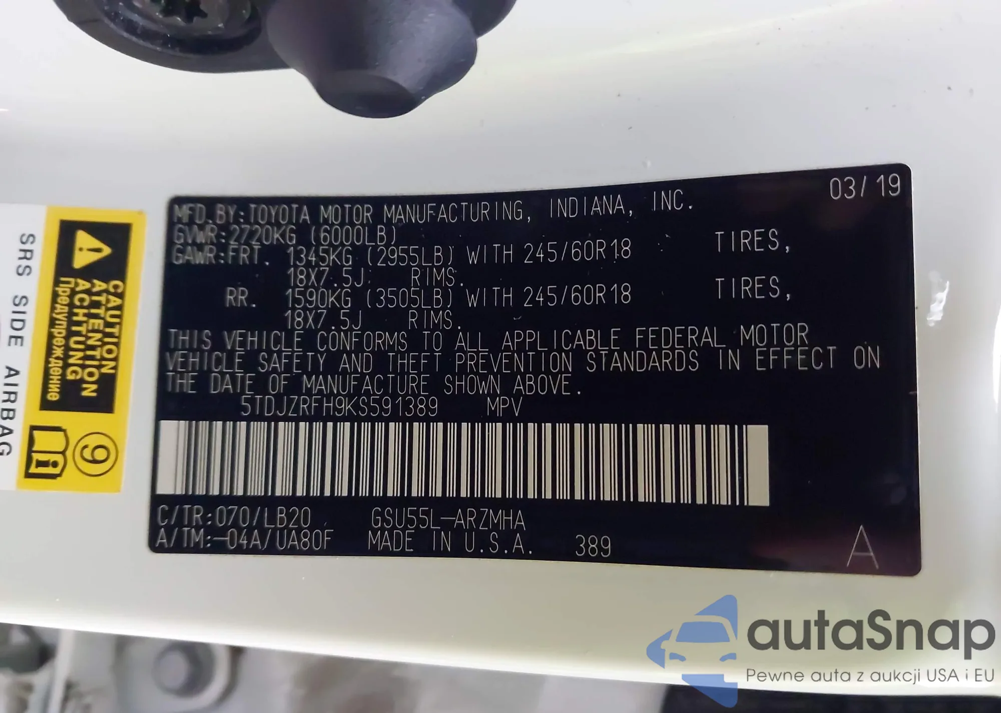 VIN: 5TDJZRFH9KS591389